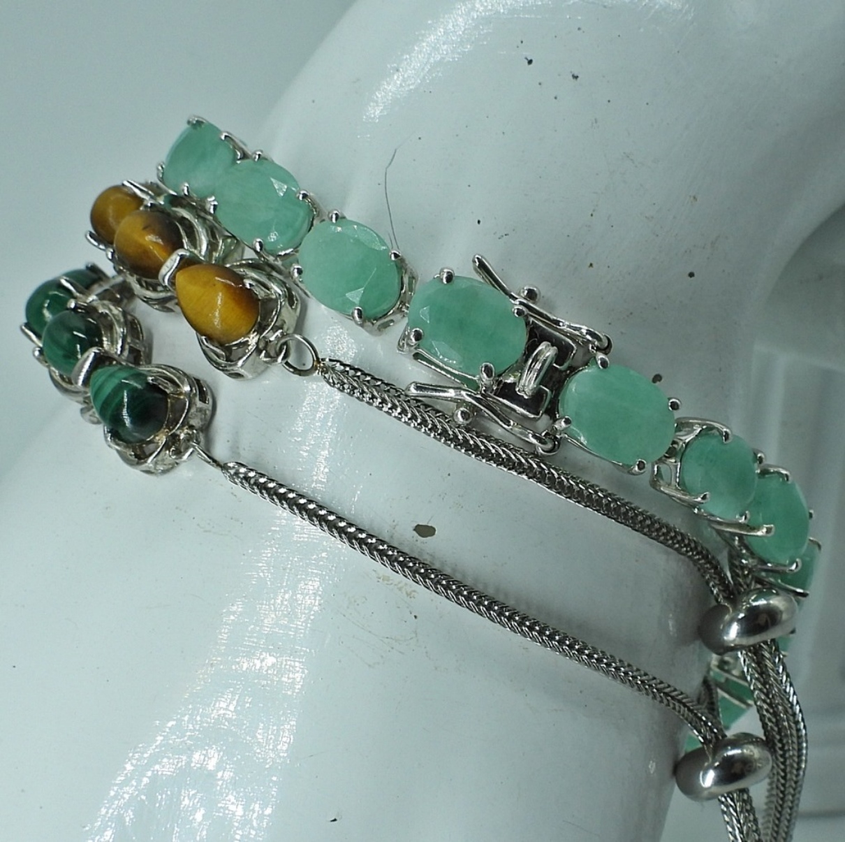 SIX NATURAL GEMSTONE BRACELETS. TIGERS YES, JADE, MALACHITE, LAPIS & MORE. STRETCHY & ADJUSTABLE.