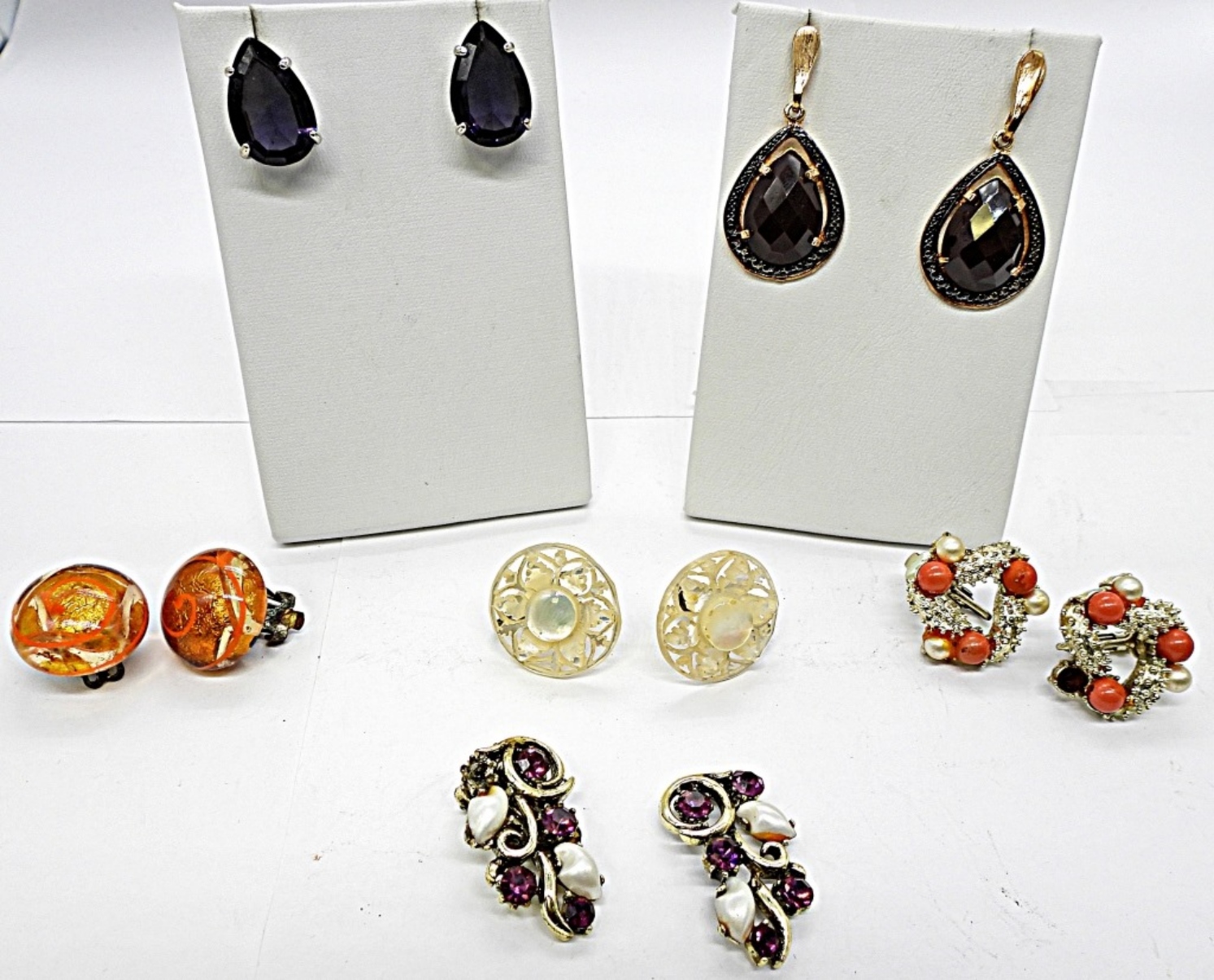 (2) GEMSONE PIERCED EARRING SETS (4) VINTAGE CLIP ON EARRING SETS