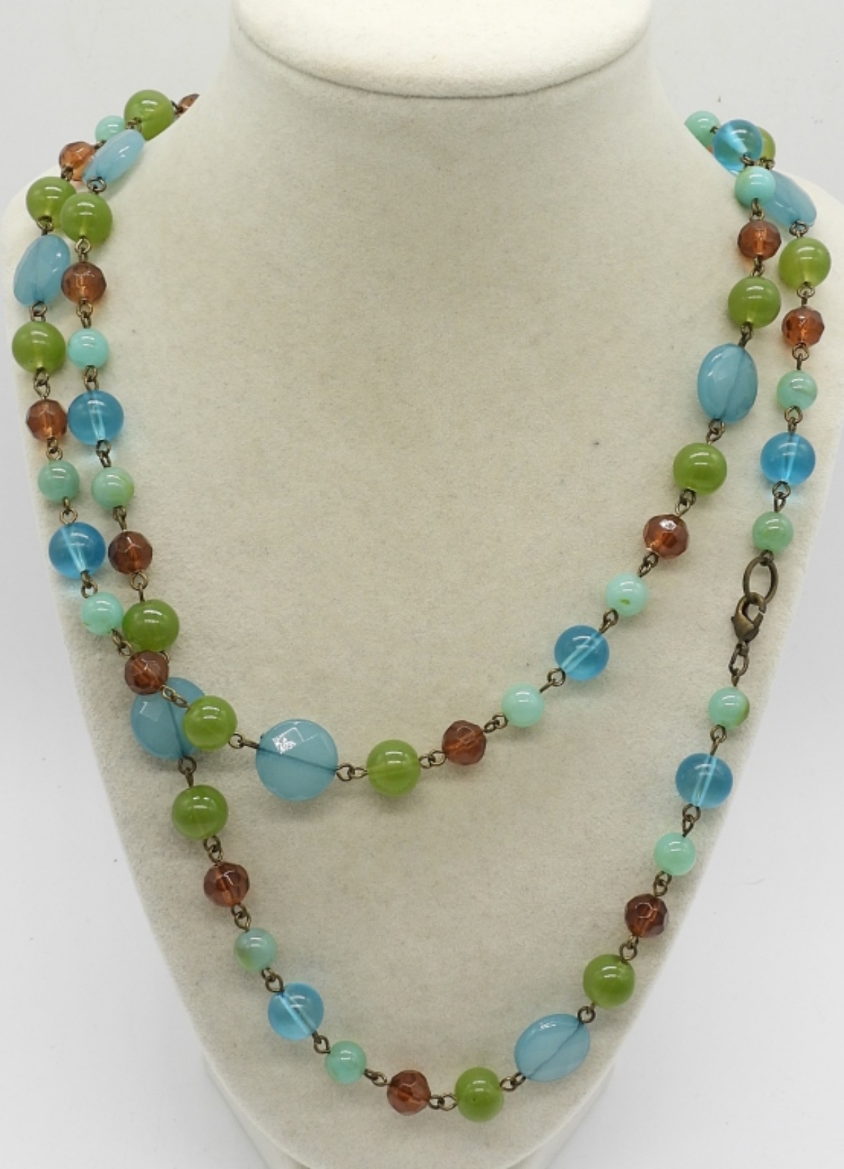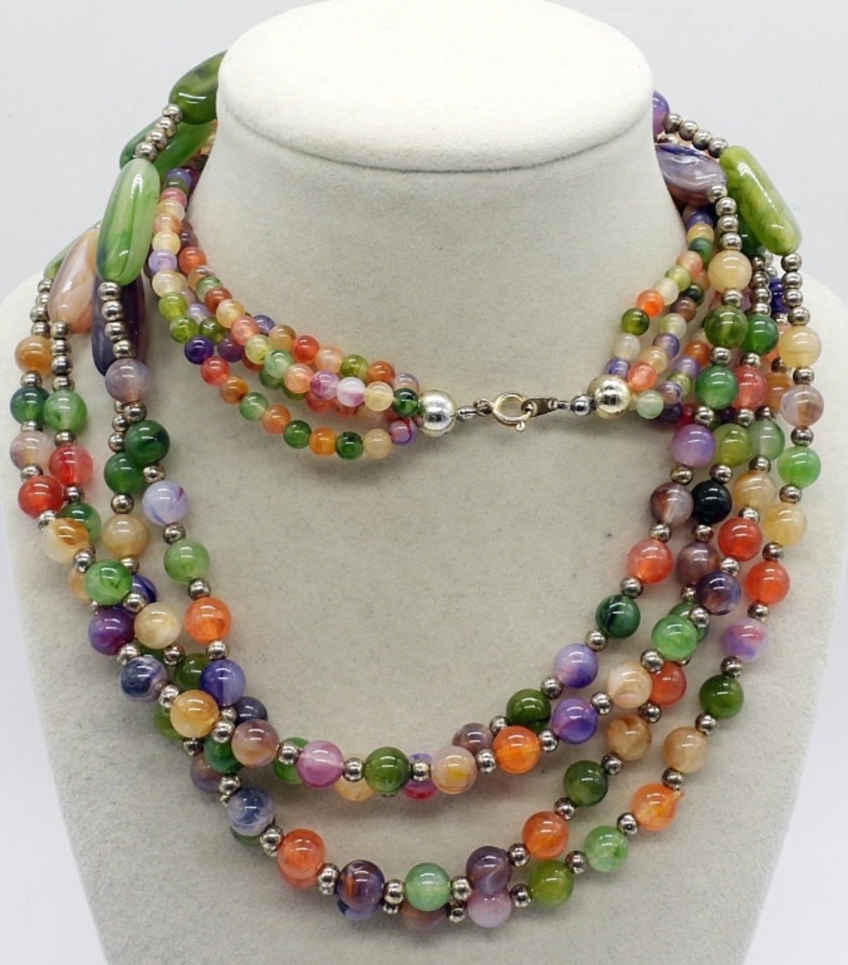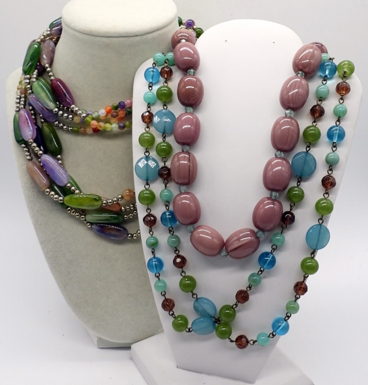 THREE COLORFUL BEADED FASHION NECKLACES. 18-42″.