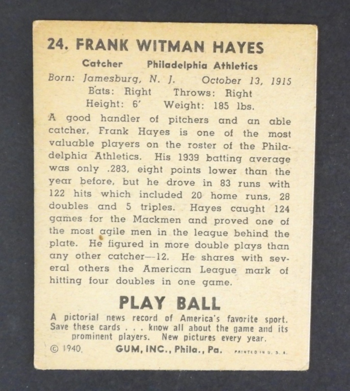 1940 PLAY BALL #24 FRANK "BLIMP" HAYES (VG)