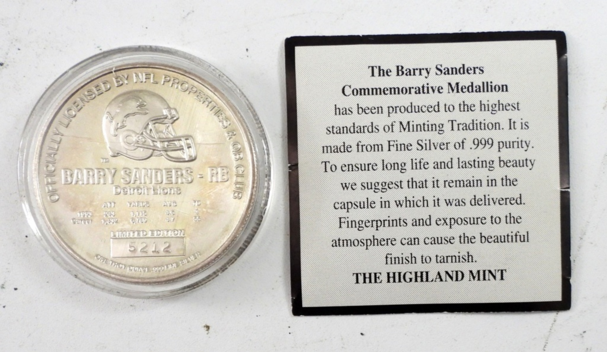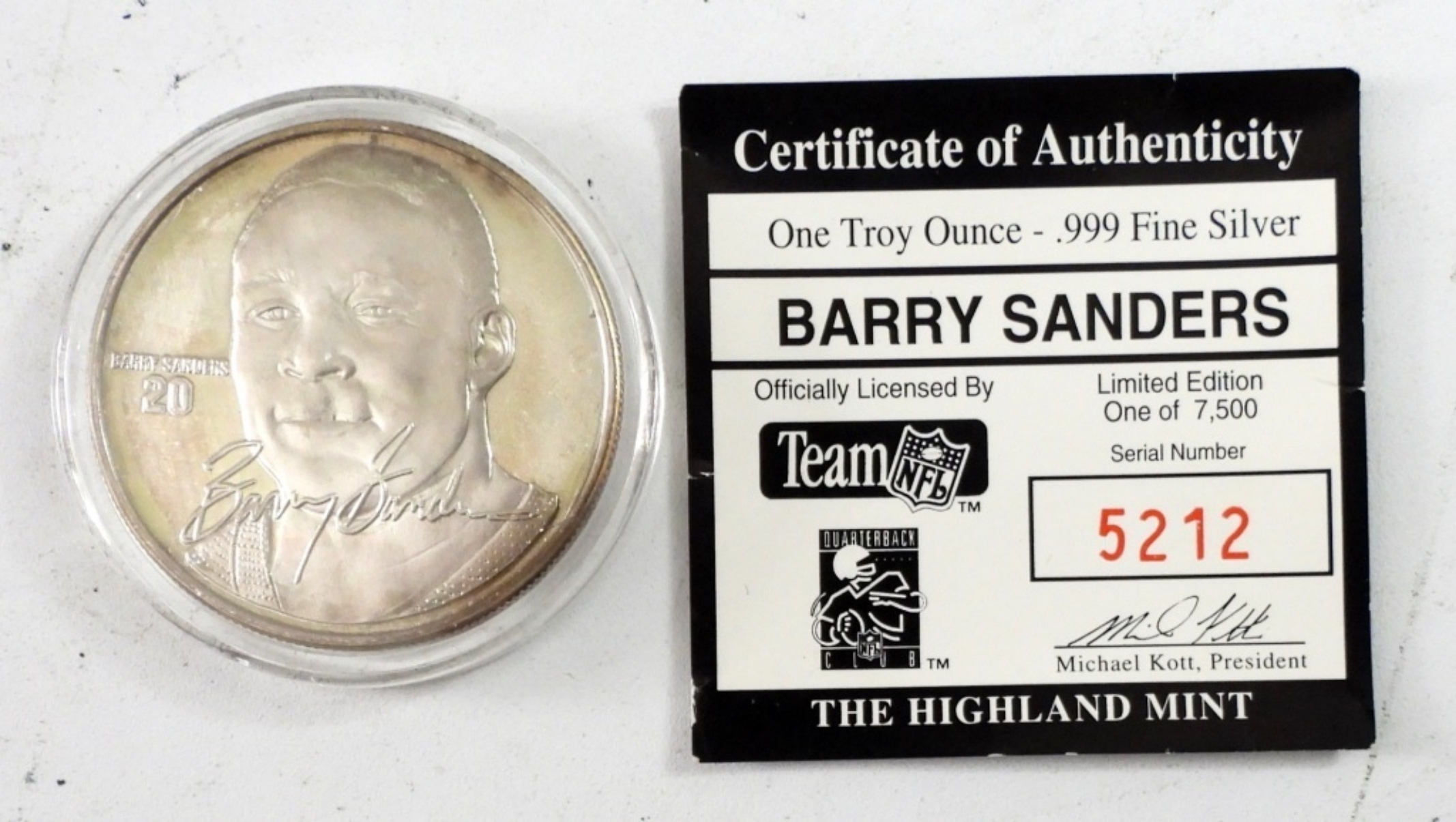 BARRY SANDERS .999 SILVER 1oz ROUND
