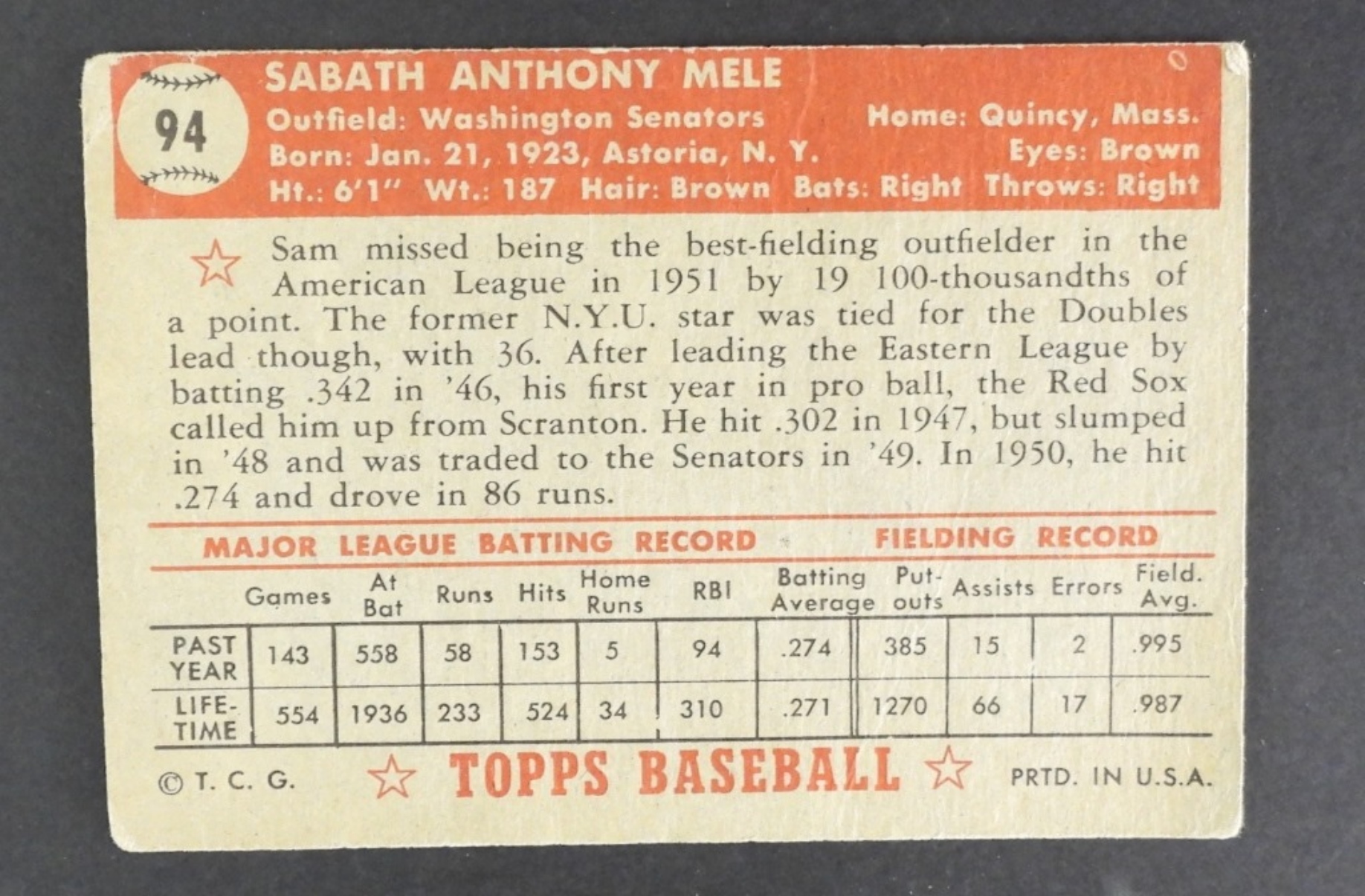 1952 TOOPS #94 SAM MELE (VG) NICE COLOR
