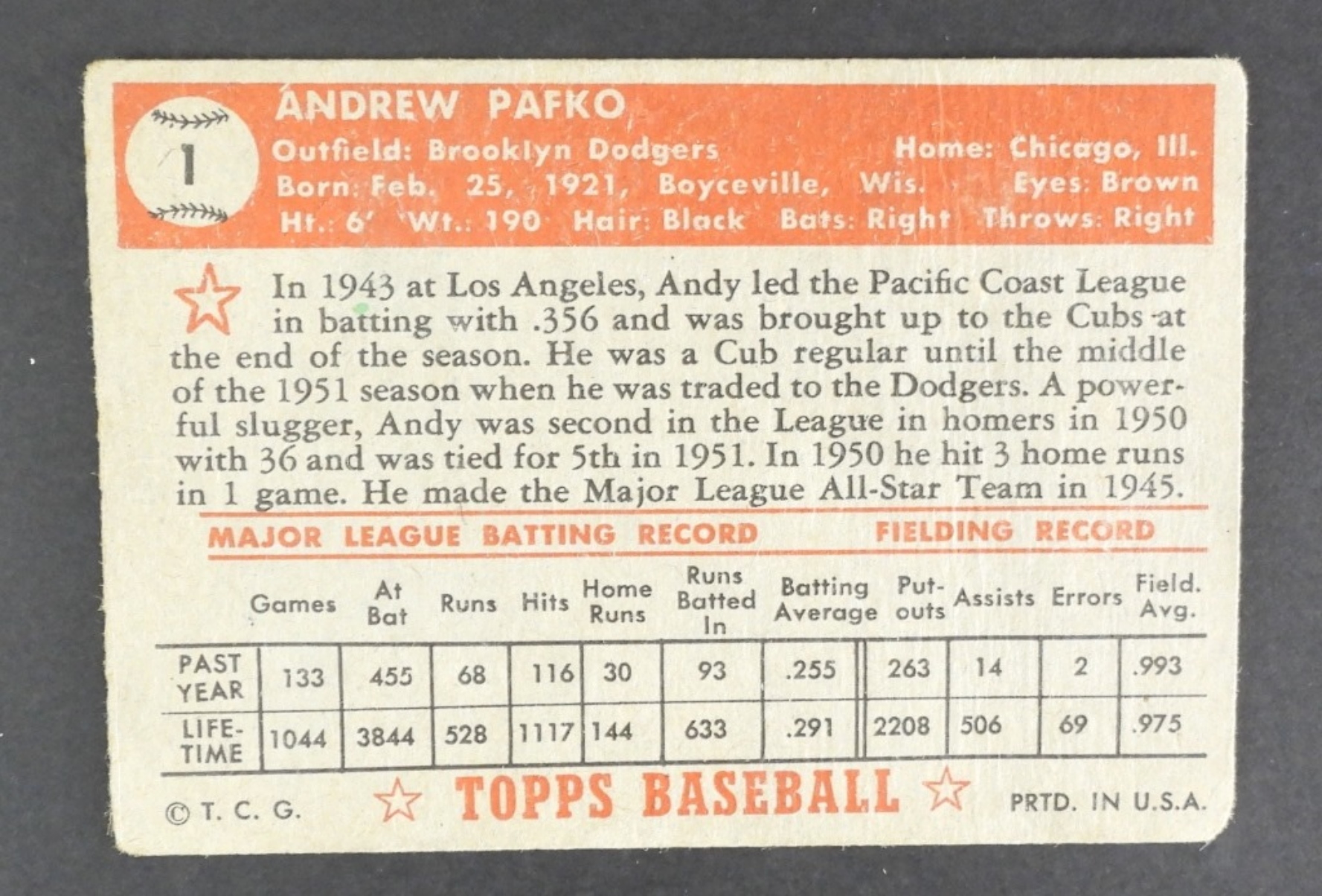 1952 TOPPS #1 ANDY PAFKO (G)