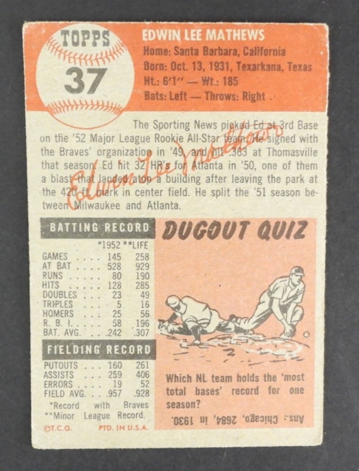 1953 TOPPS #37 ED MATTHEWS , BOSTON BRAVES (G)