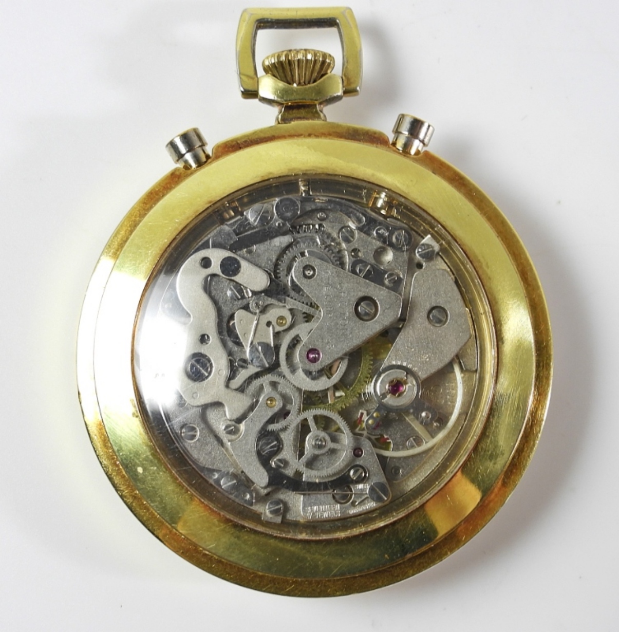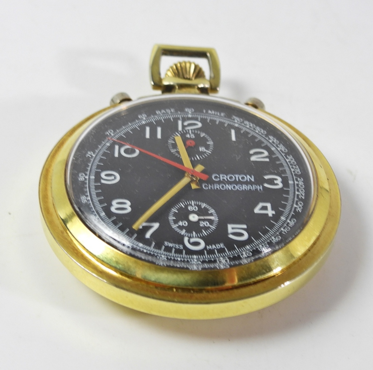 PERFECT ORIGINAL BLACK DIAL. 45mm DIAMETER. GOLD PLATED CASE WITH DISPLAY BACK. 17 JEWEL MANUAL WIND MOVEMENT
