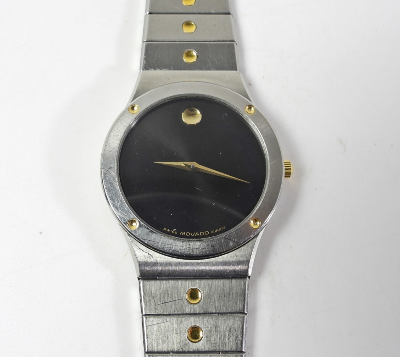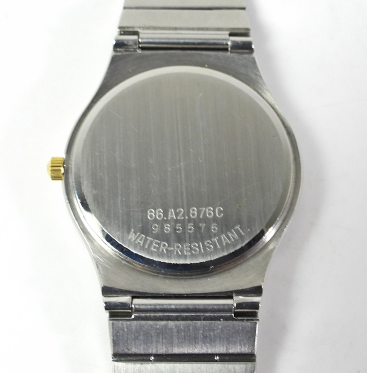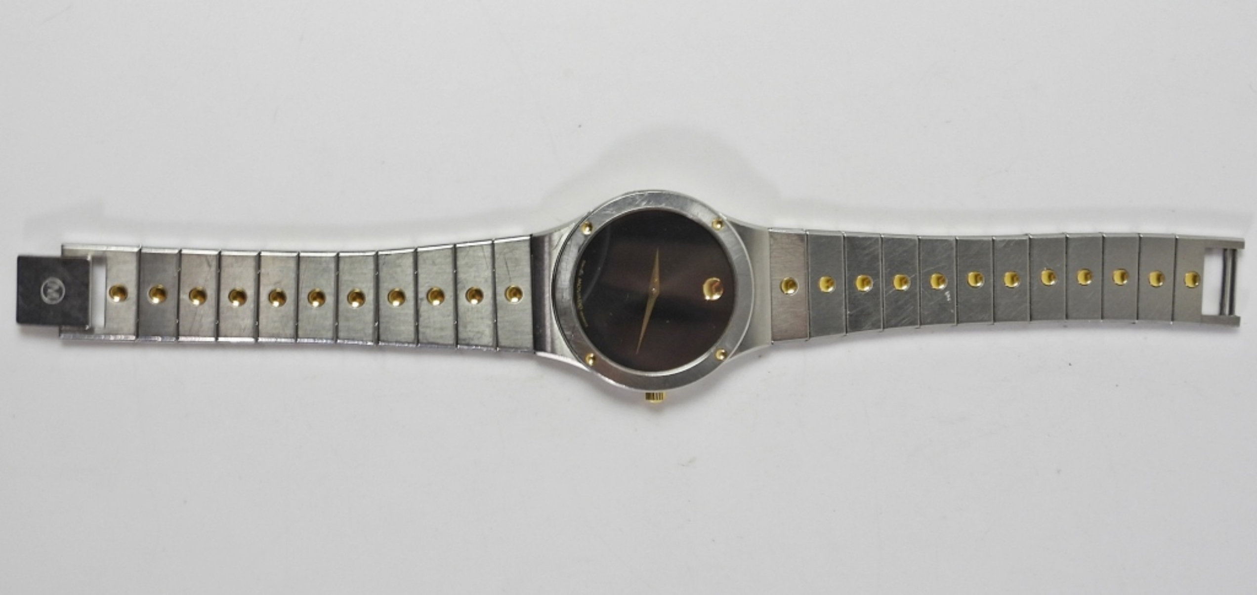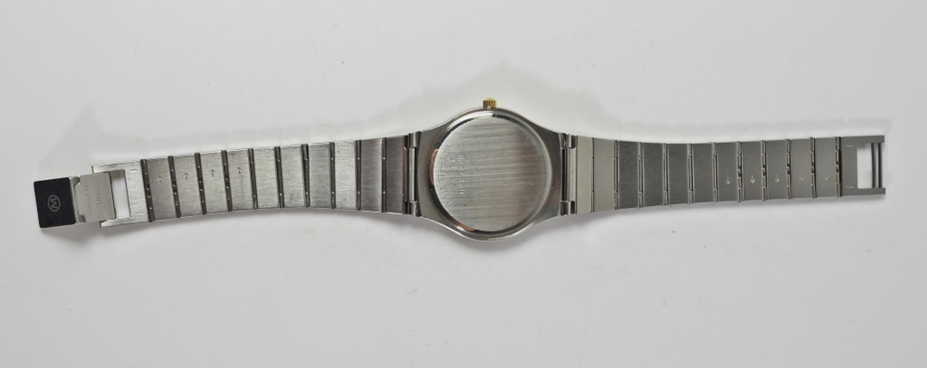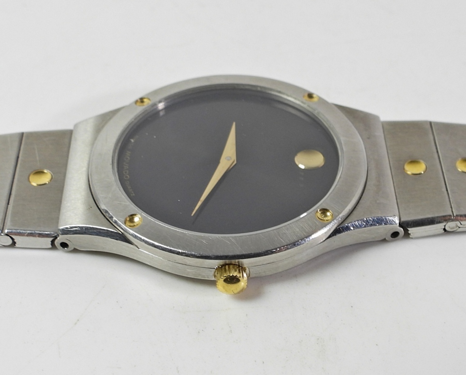 8.AZ.876C PERFECT BLACK DIAL. 32mm DIAMETER. STAINLESS CASE WITH GOLD ACCENTS TO HEAD AND BRACELET.