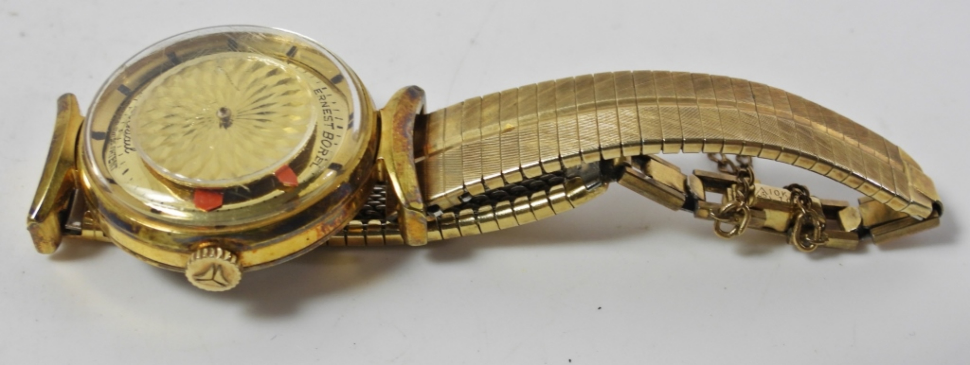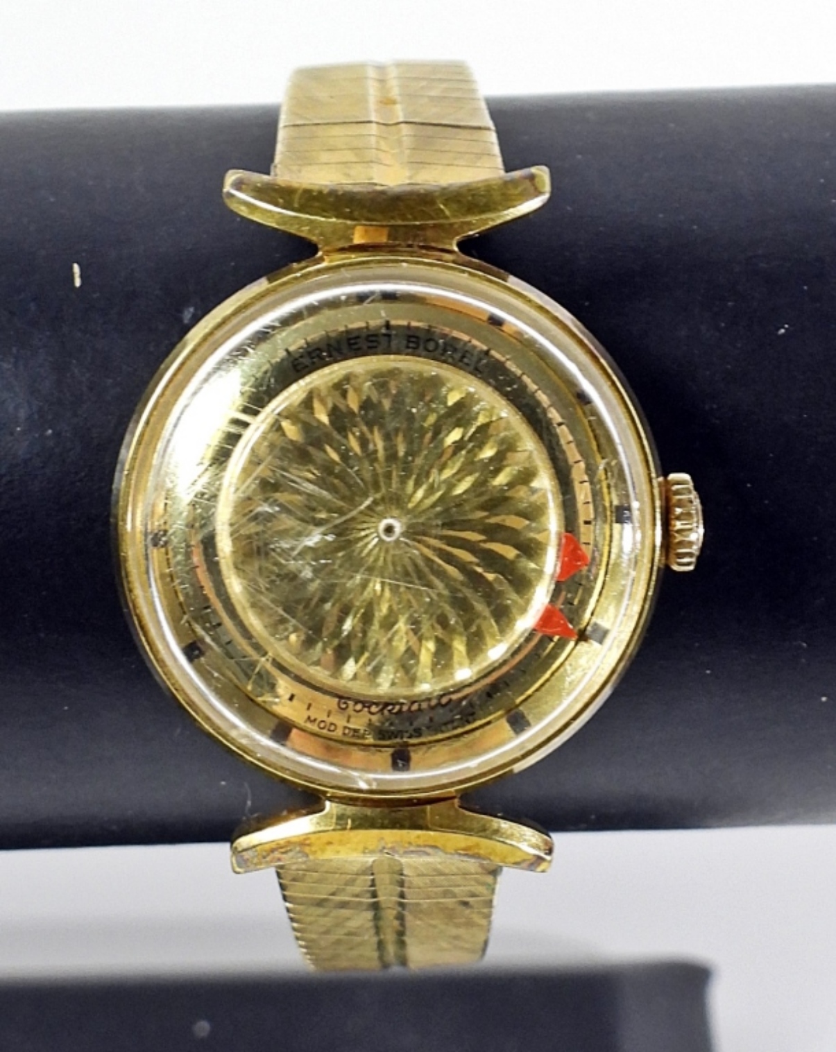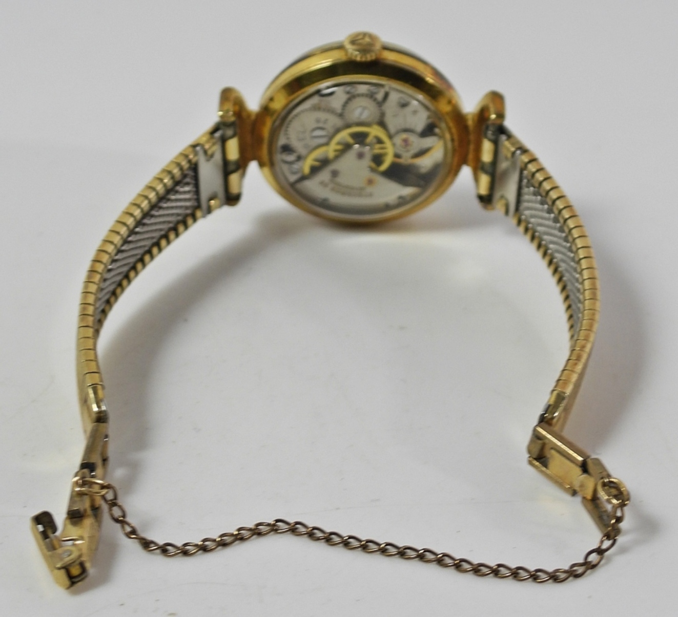WHEN RUNNING, SECONDS DISC GIVES A KALEIDOSCOPE EFFECT. 17 JEWEL MANUAL WIND MOVEMENT. WITH VINTAGE GOLD FILLD BRACELET