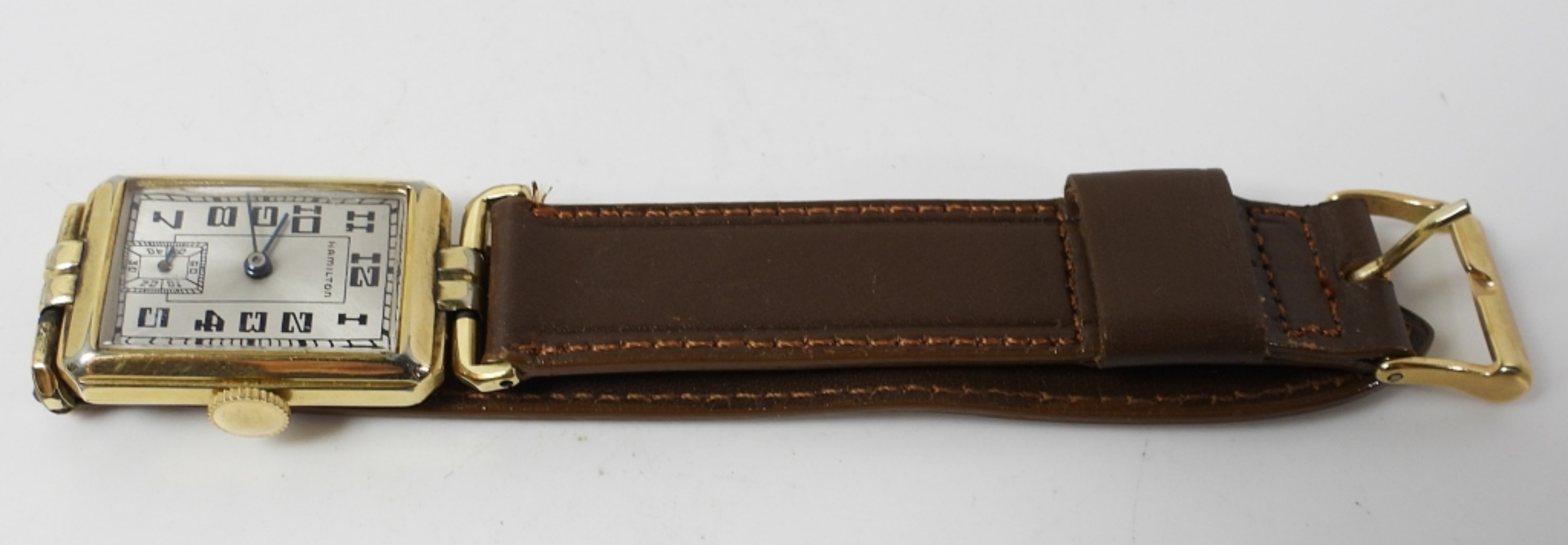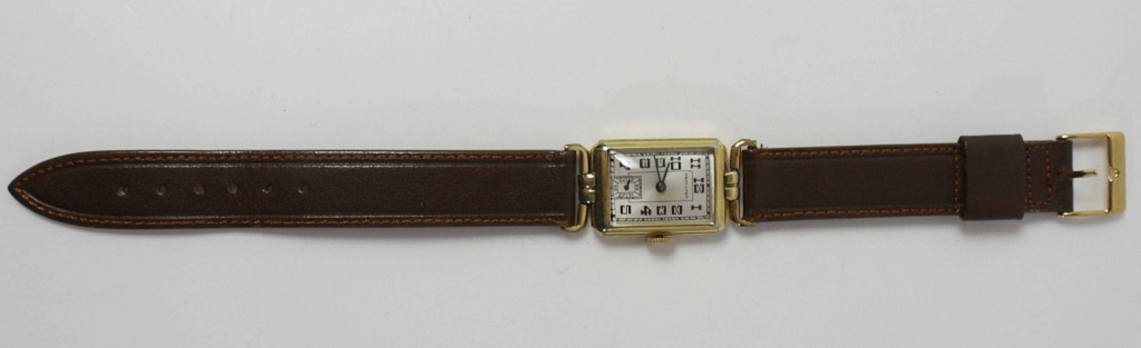 DIAL IS EXCELLENT (OLDER FINISH). 42mm LONG GOLD FILLED CASE (STAR). 17 JEWEL CAL 980 MOVEMENT. NEW STRAP.