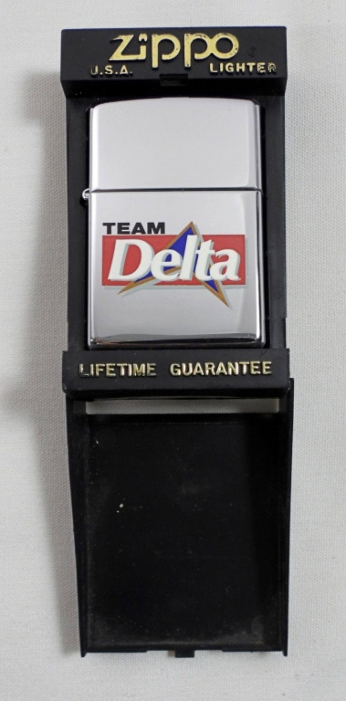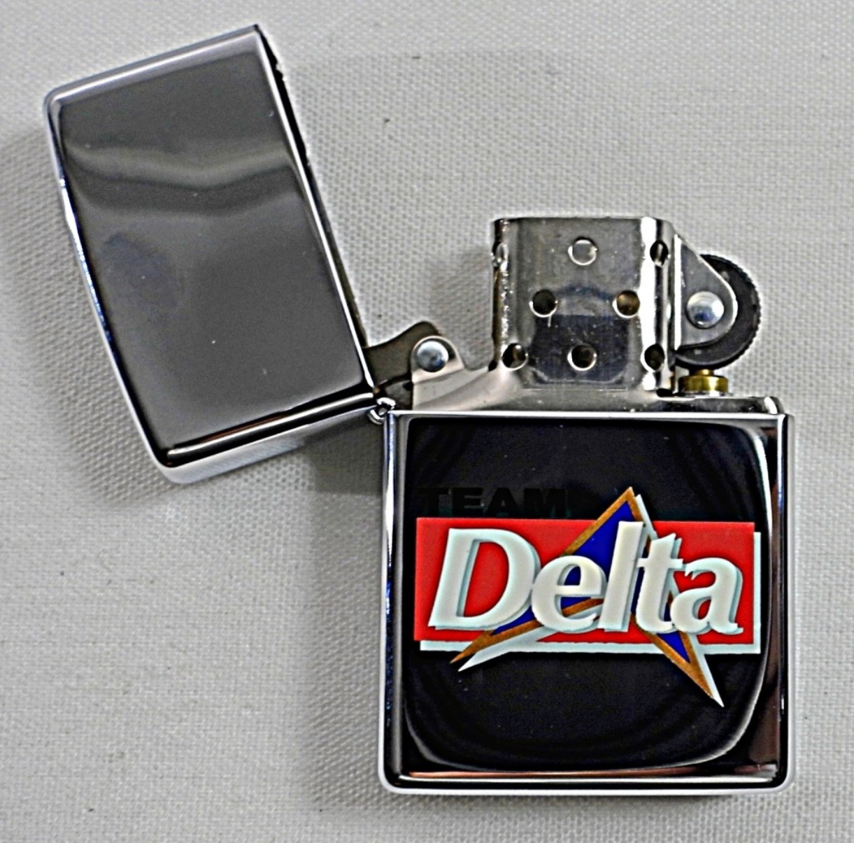 1998 CHROME TEAM DELTA LOGO ZIPPO (UNFIRED) IN BOX