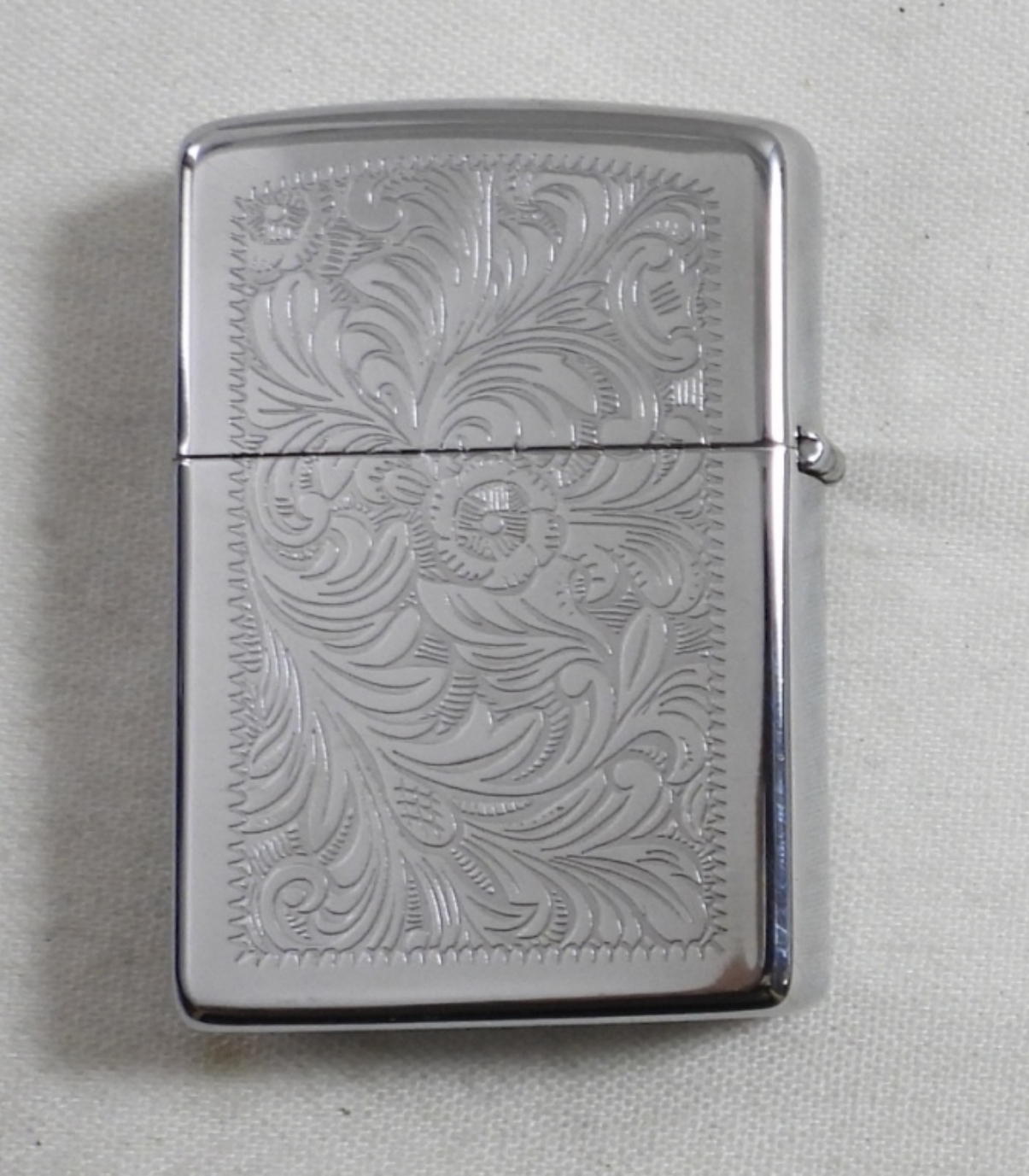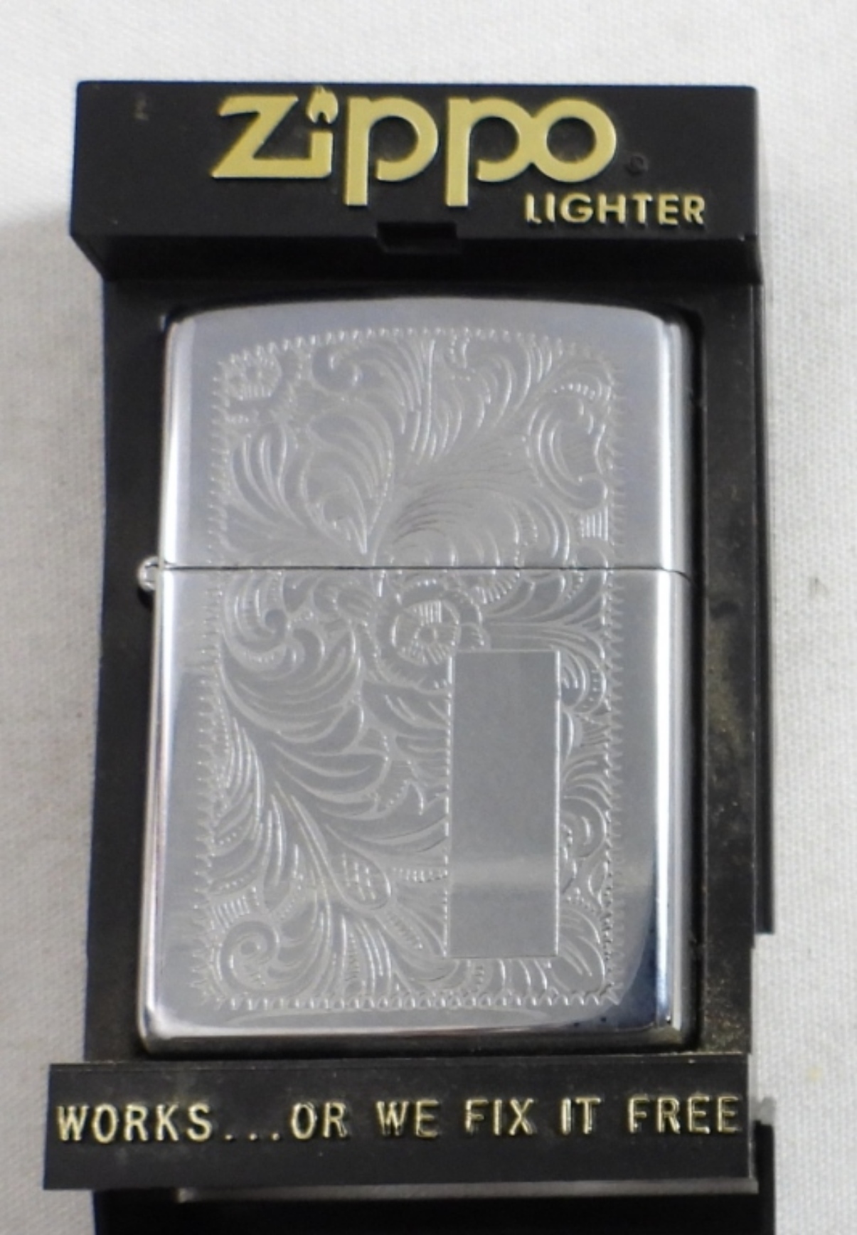 1990 ( FIRED ) CHROME VENETIAN DESIGN ZIPPO IN CASE