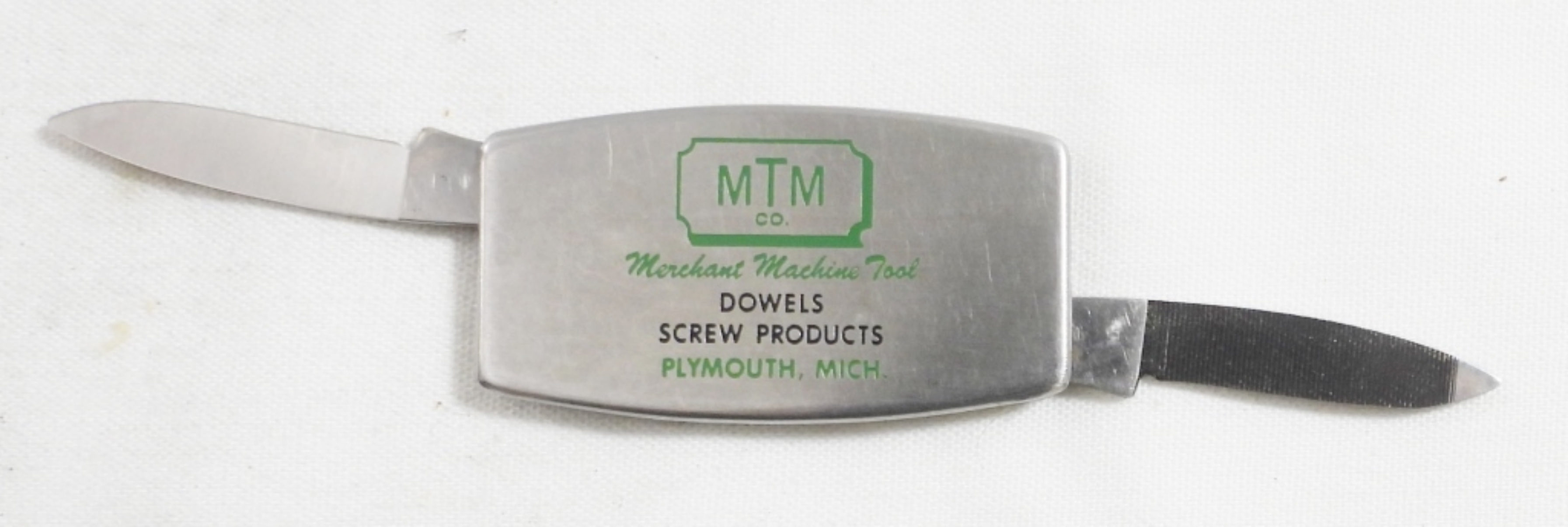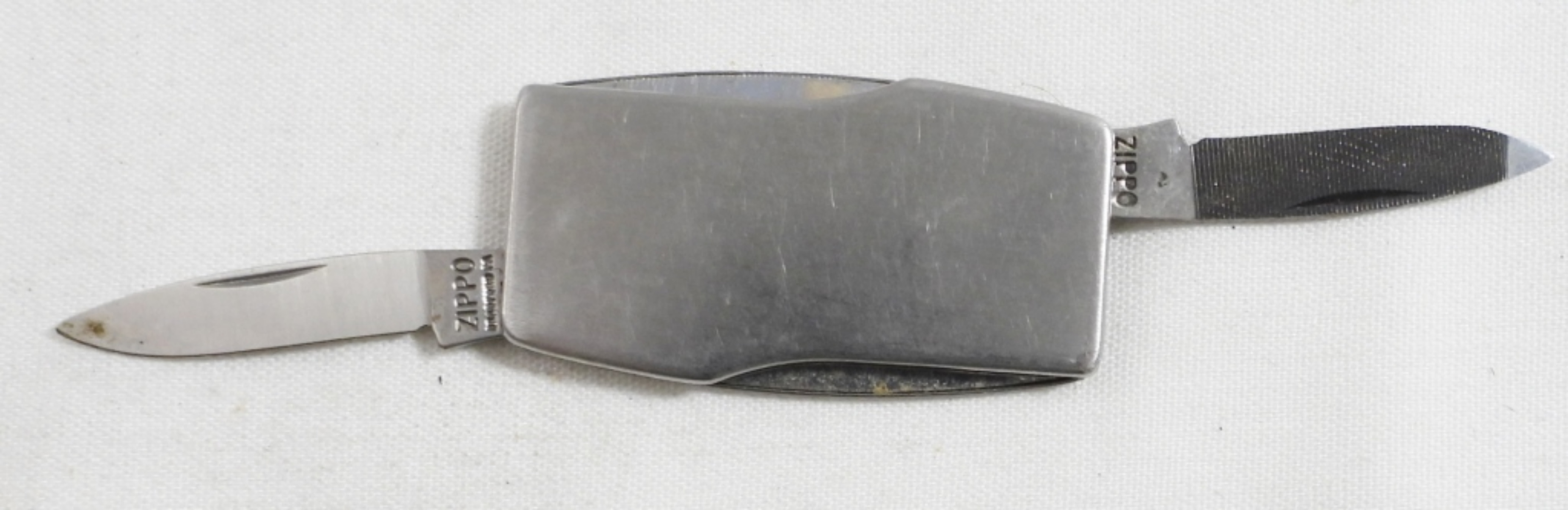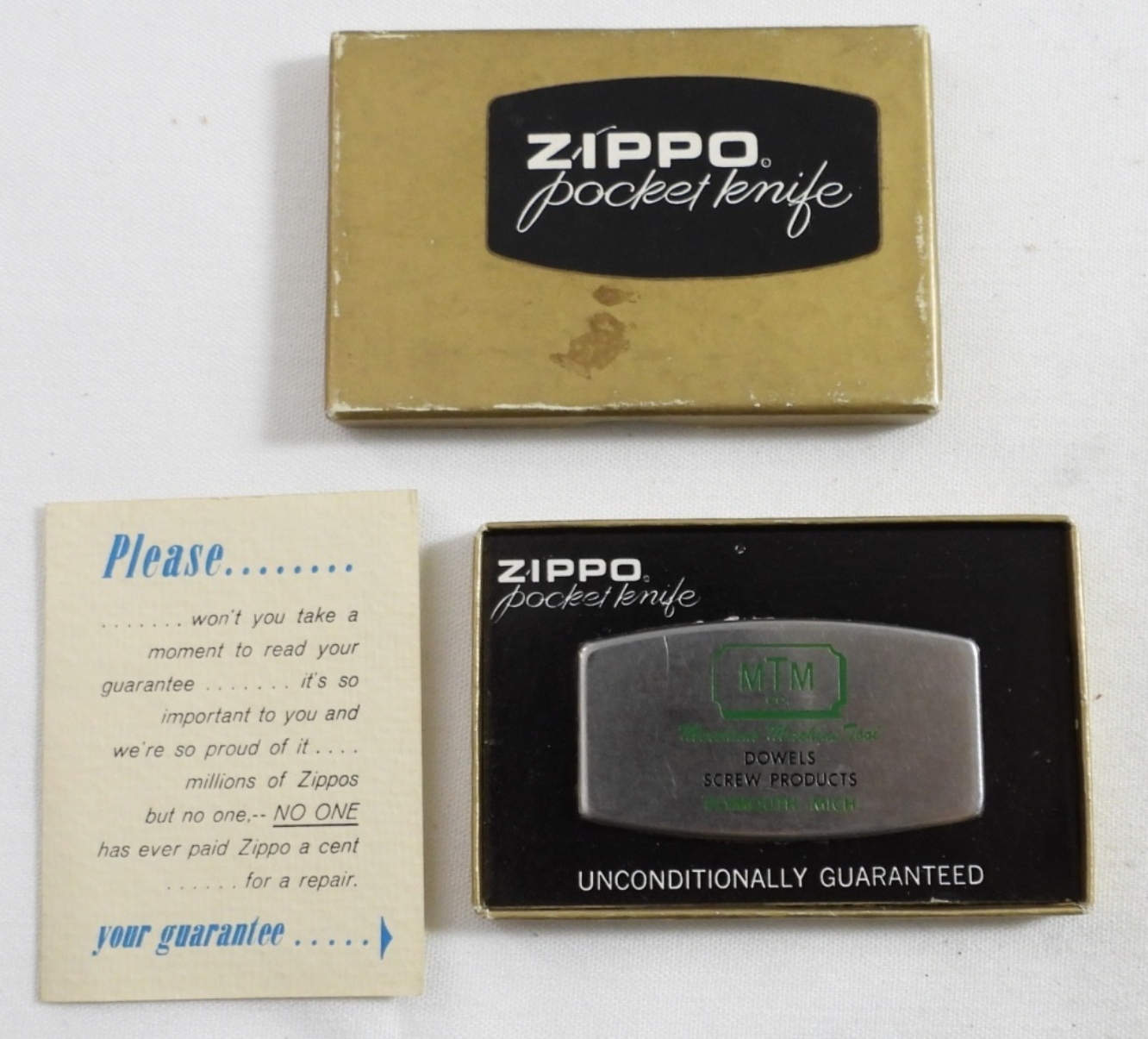 ZIPPO POCKET KNIFE IN ORIGINAL BOX WITH PAPERS, BUSINESS LOGO (MTM MERCHANT MACHINE TOOL)