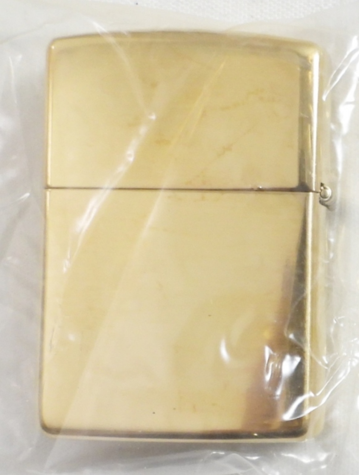 1992 HARLEY DAVISON BRASS 1957 TANK DESIGN ZIPPO LIGHTER ( UNFIRED) IN ORIGINAL CASE