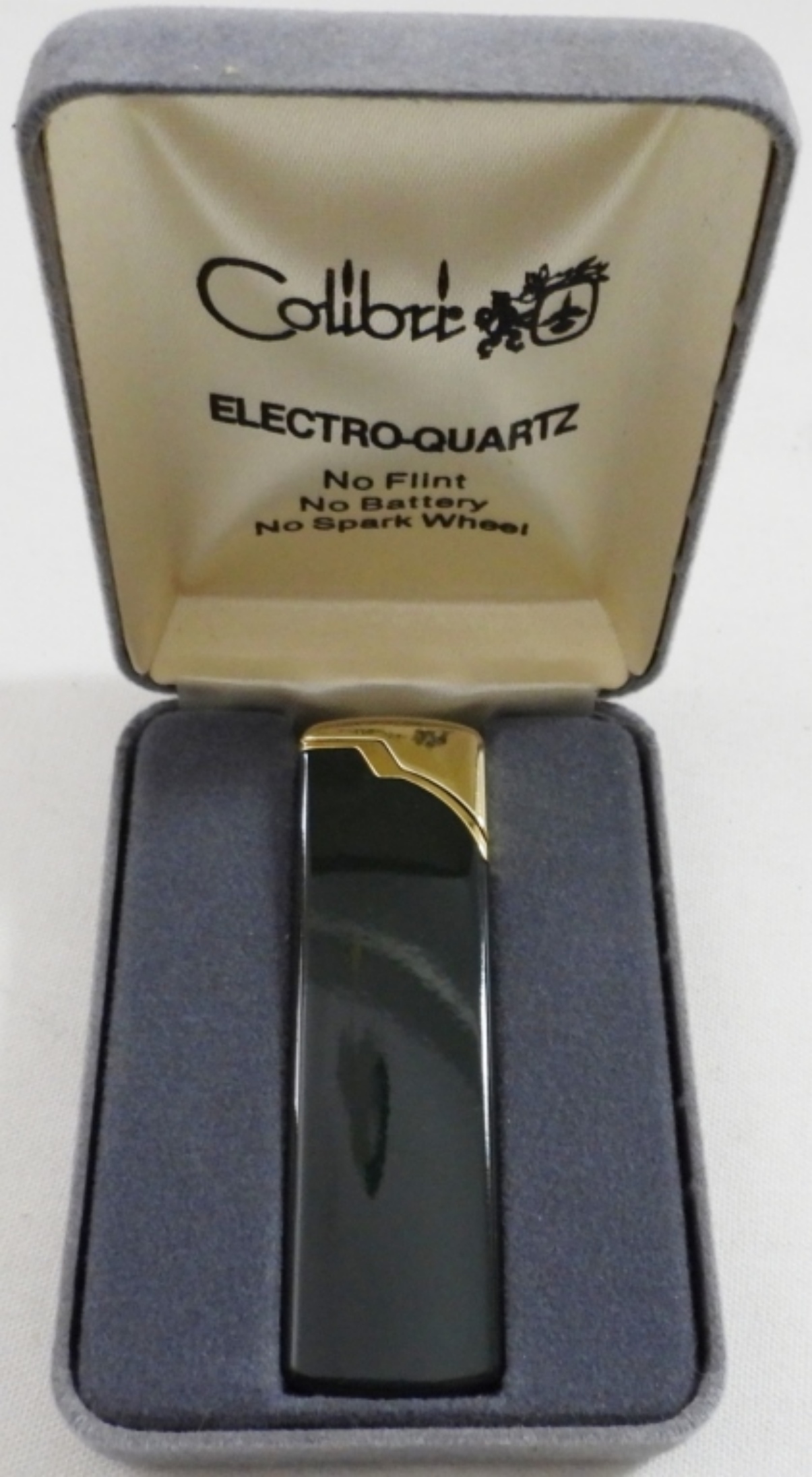 VINTAGE COLIBRI ELECTRO-QUARTZ GOLD TONE ,EMERALD COLORED LIGHTER IN CASE