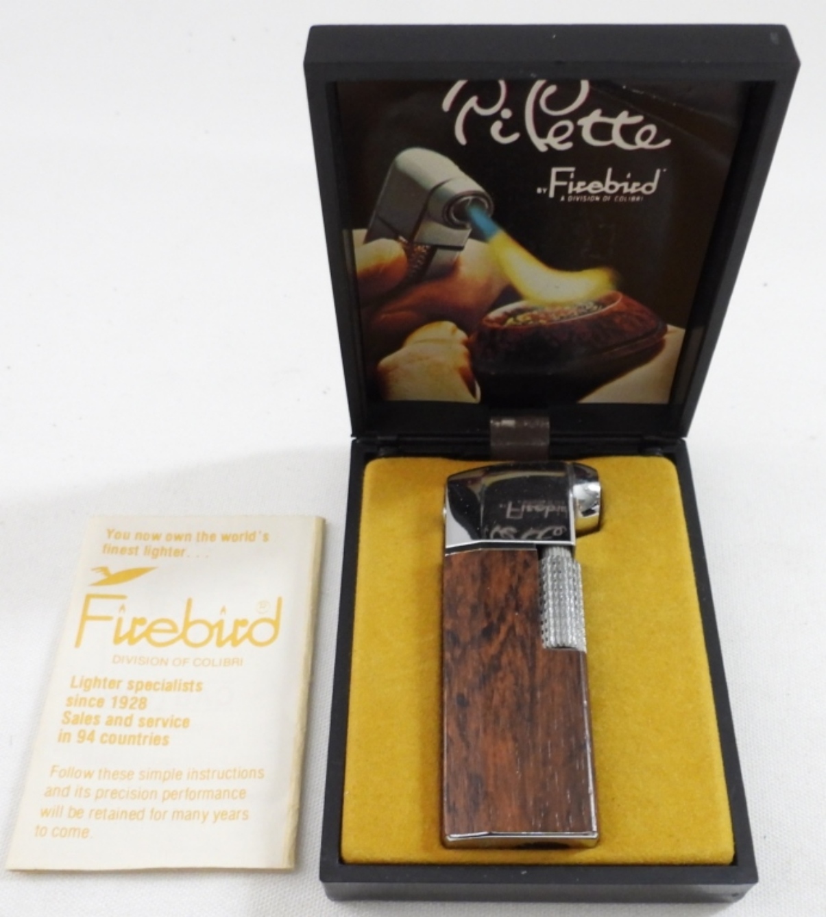 PIPETTE FIREBIRD BUTANE PIPE POCKET LIGHTER. MAHOGANY COLOR IN BOX