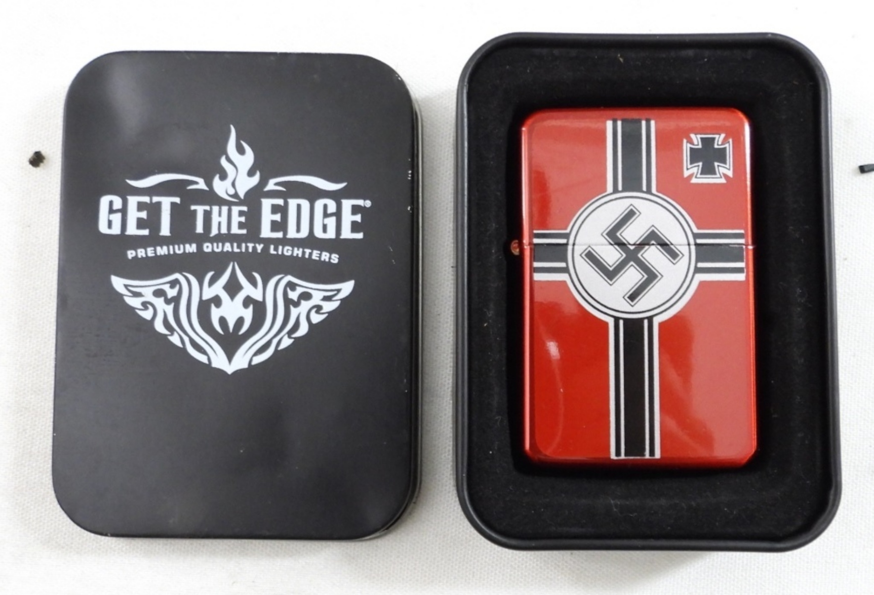GET THE EDGE RED LIGHTER WITH GERMAN WWII BATTLE FLAG WITH IRON CROSS