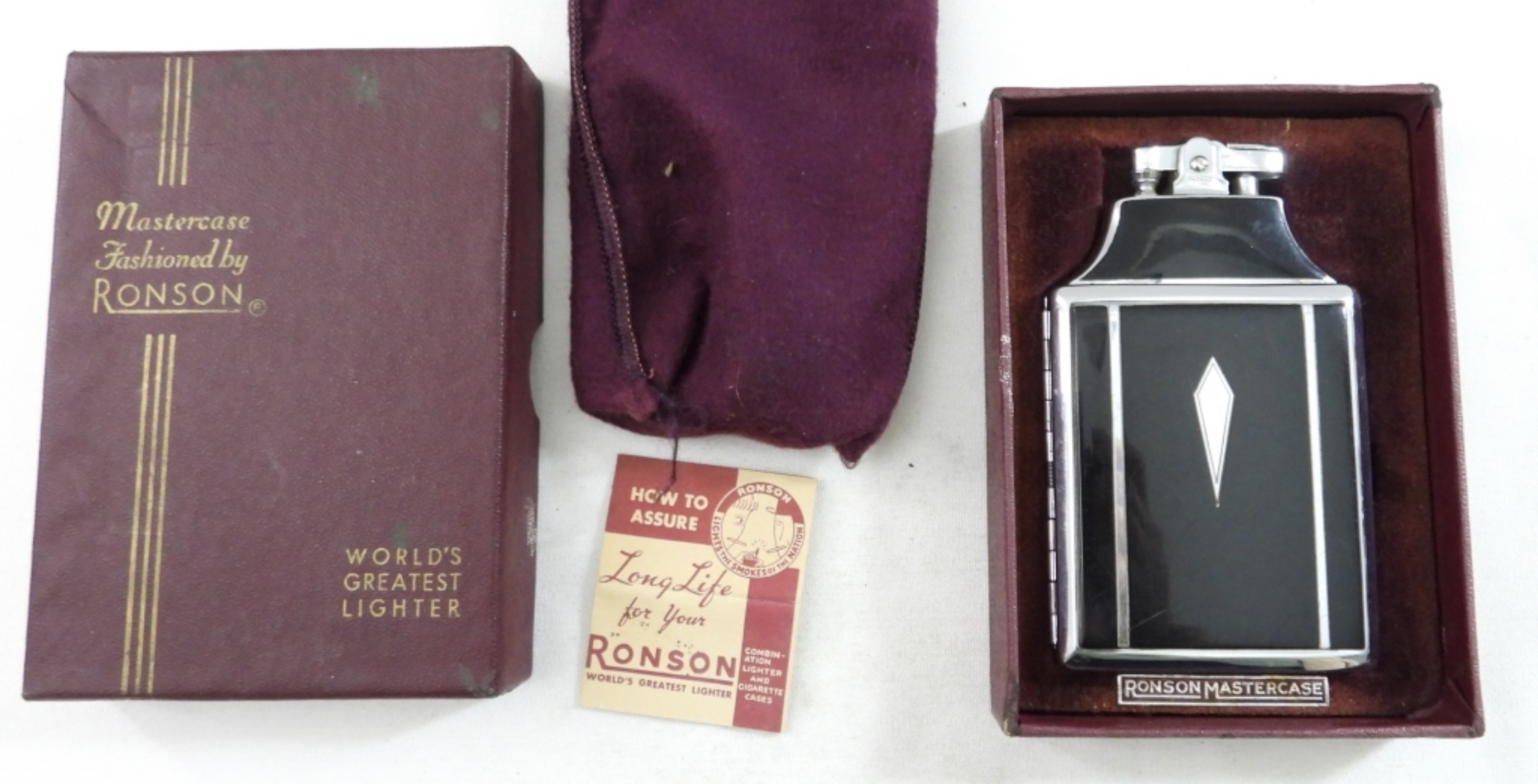 RONSON MASTERCASE LIGHTER & CIGARETTE CASE IN POUCH AND ORIGINAL BOX