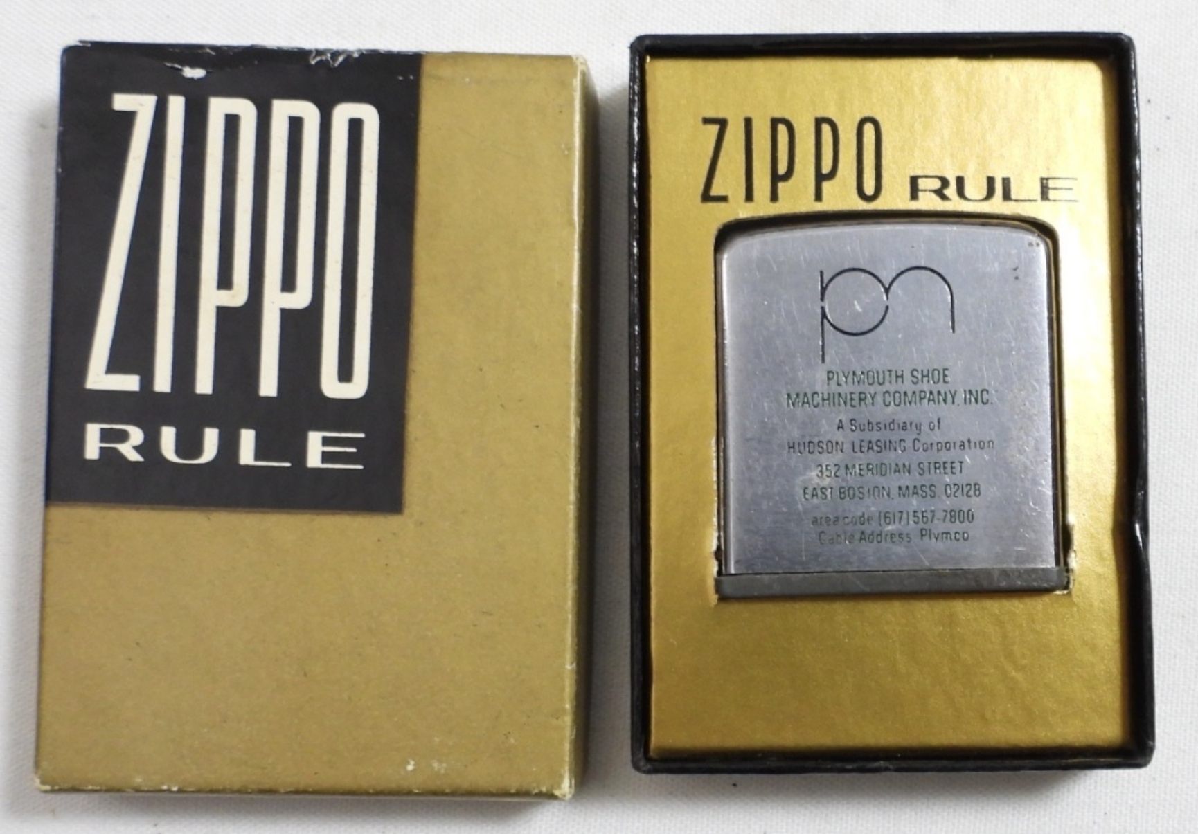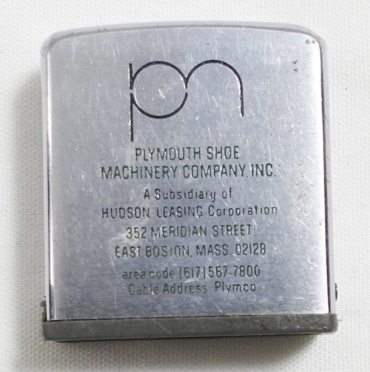 VINTAGE ZIPPO RULE MEASURING TAPE IN BOX, PLYMOUTH SHOE MACHINERY COMPANY INC LOGO