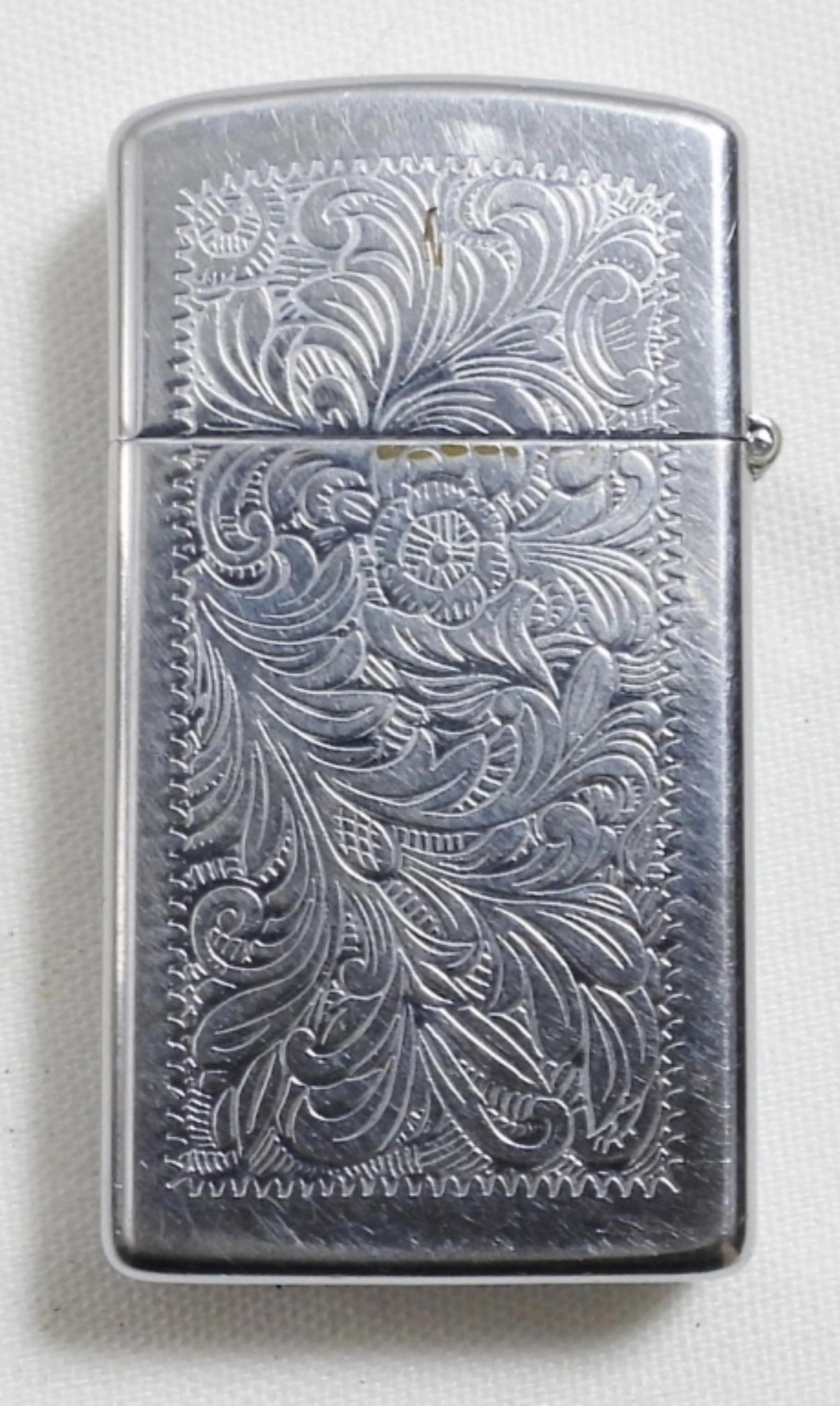 1992 SLIM VENETIAN CHROME ZIPPO ( FIRED) IN GREEN ZIPPO BOX