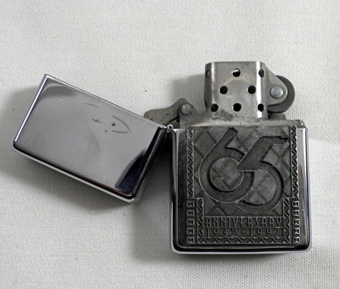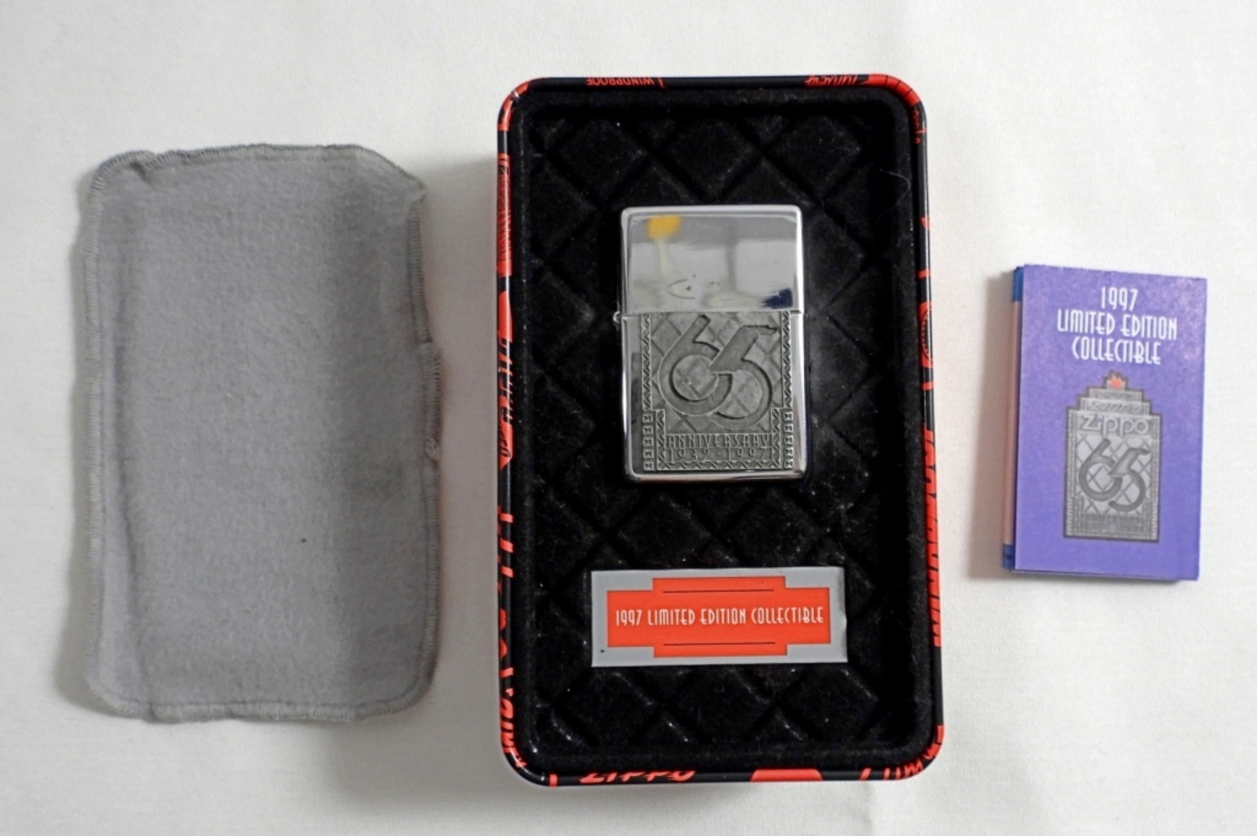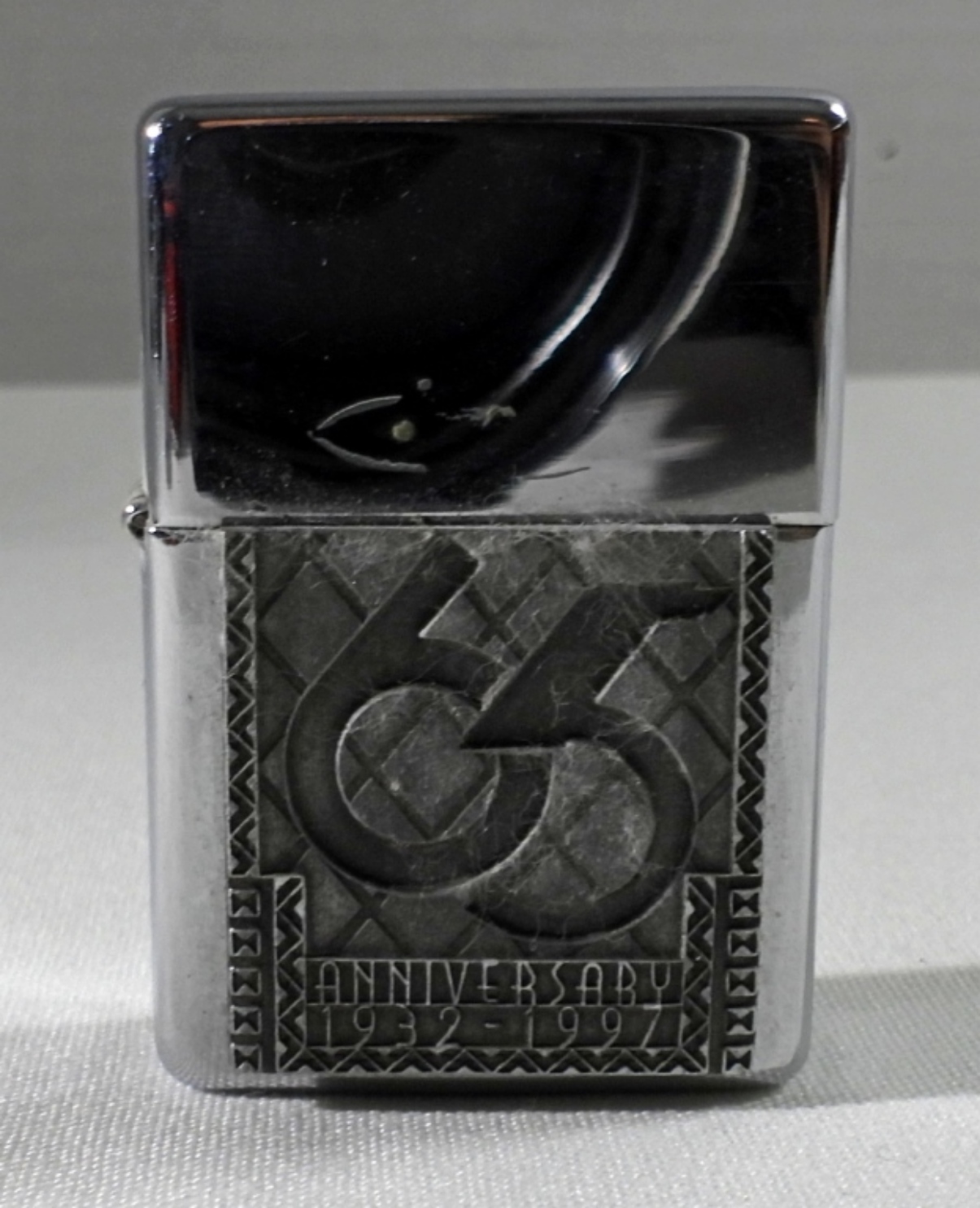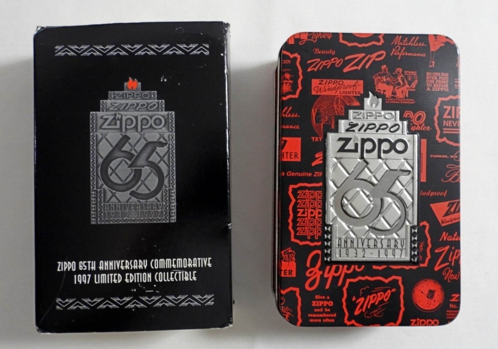 VINTAGE 1997 65 ANNIVERSARY ZIPPO LIGHTER IN ORIGINAL TIN, ( FIRED)