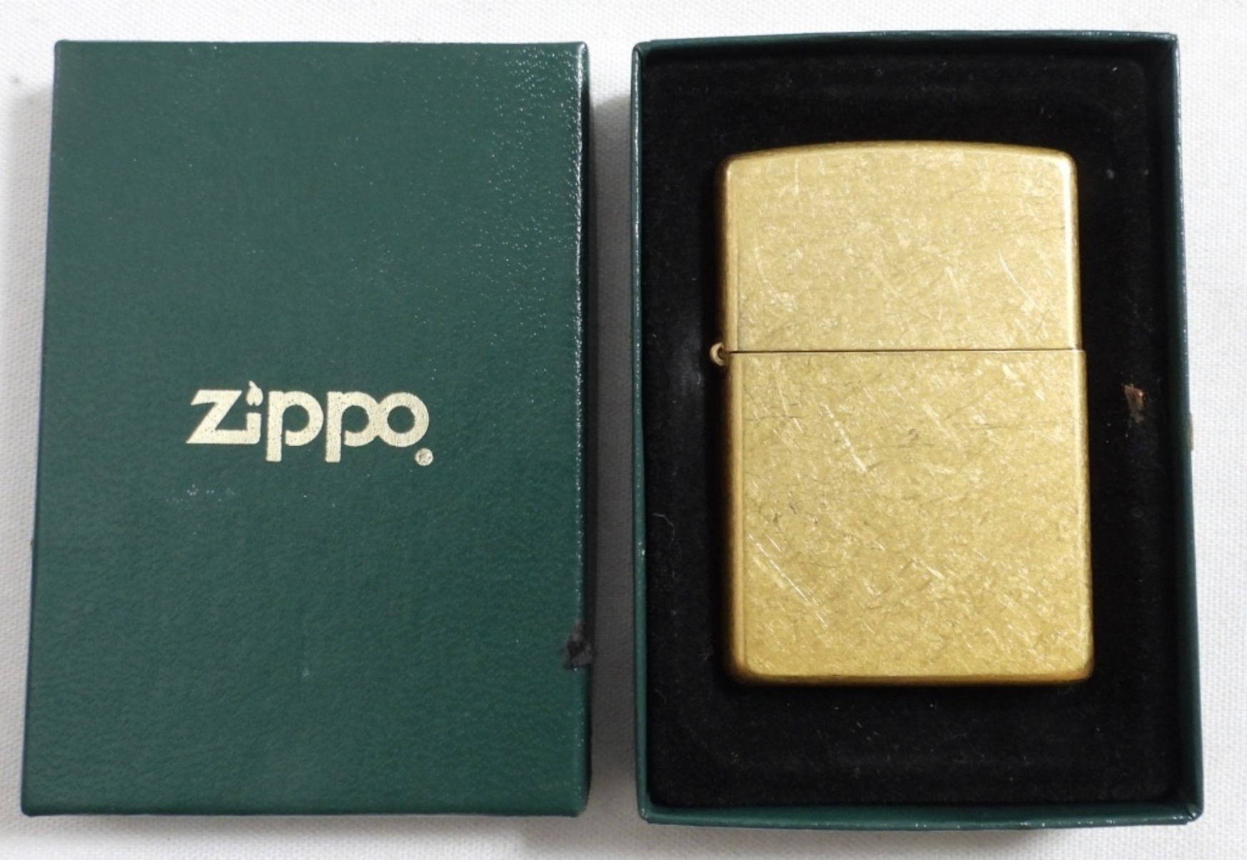 2004 UNFIRED BRASS ZIPPO IN A GREEN ZIPPO BOX