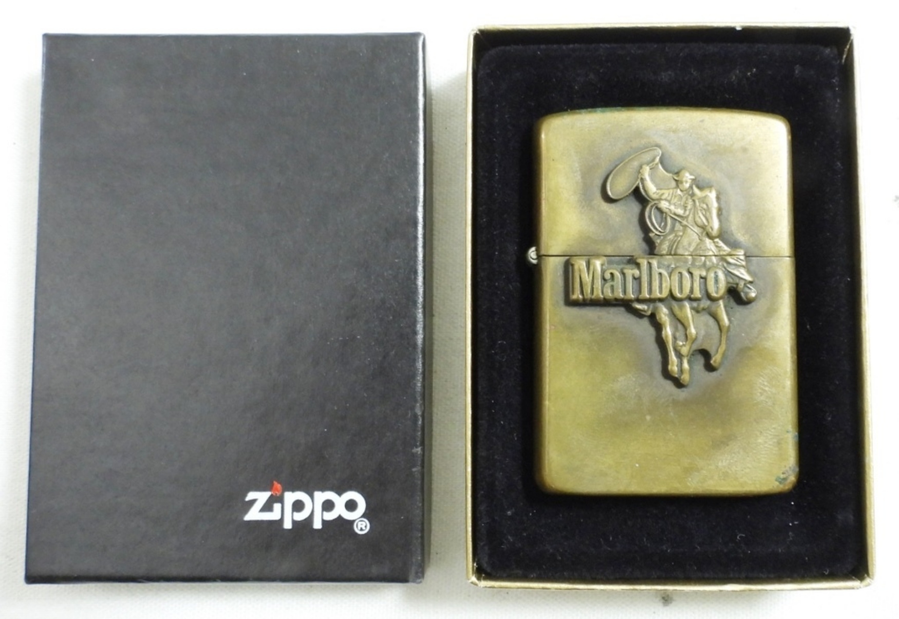 1986 (FIRED) BRASS MARLBORO COWBOY ZIPPO, IN BOX