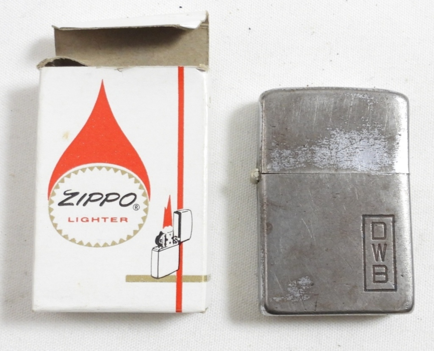 1937-1950 UNFIRED PAT #2032695 CHROME ZIPPO IN BOX, INSERT DOES NOT MATCH( ENGRAVED DWB)