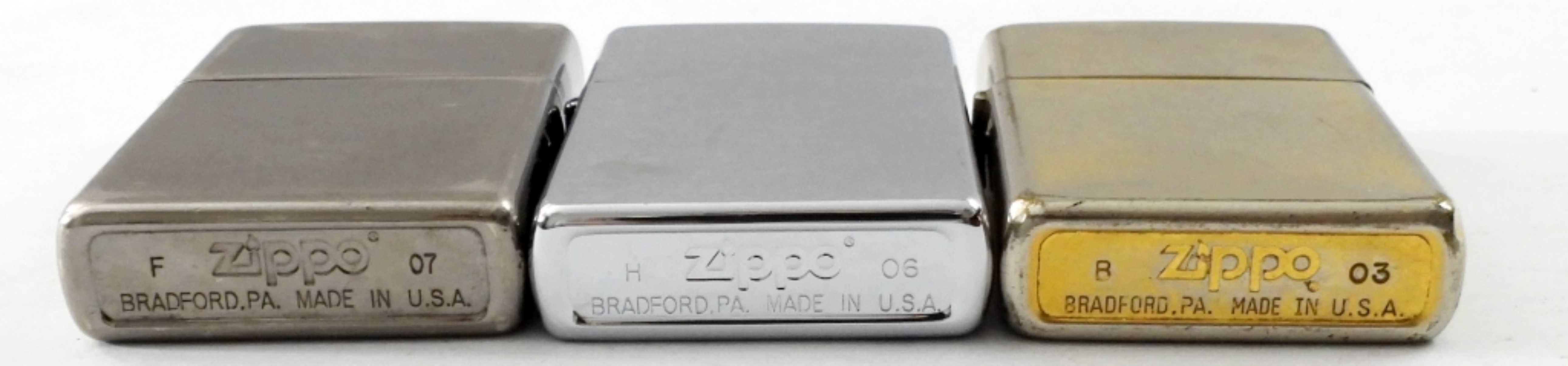 2003 BRASS TONE ZIPPO LIGHTER FIRED. 2006 ZIPPO LIGHTER , FIRED.2007 ZIPPO LIGHTER, FIRED