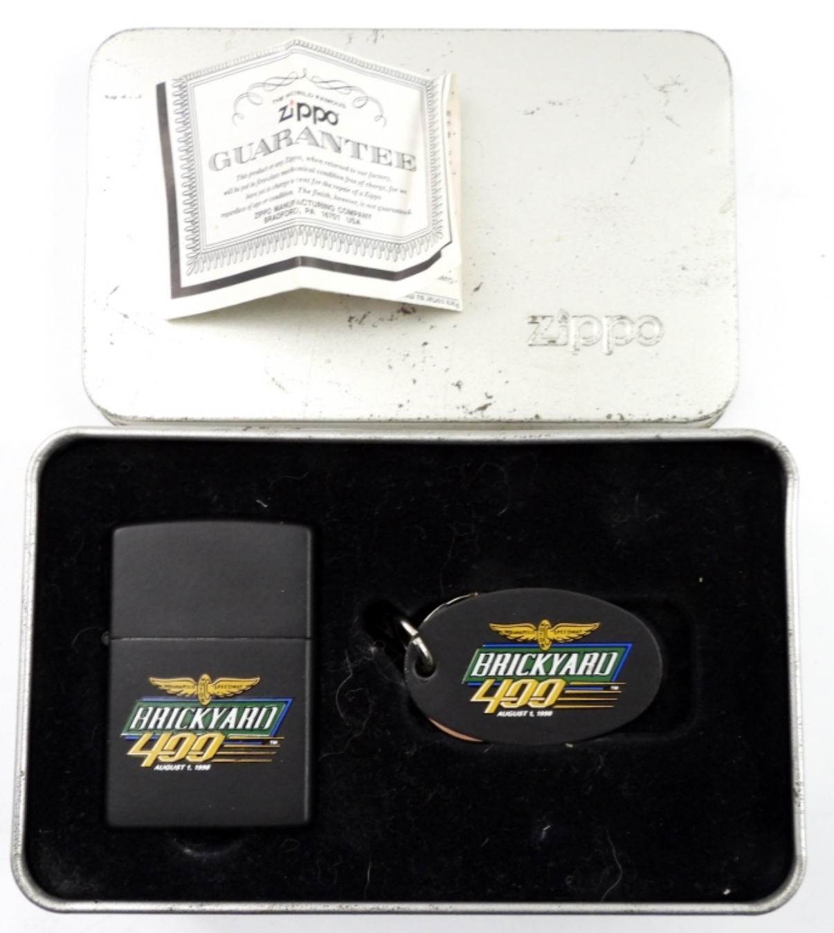 1999 UNSEALED/UNFIRED NASCAR BRICKYARD 400 ZIPPO WITH KEY CHAIN IN TIN