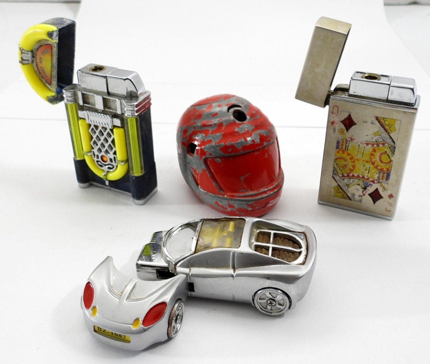 ALL DIFFERENT – CAR, HELMET, JUKE BOX, QUEEN OF DIAMONDS – USED CONDITION
