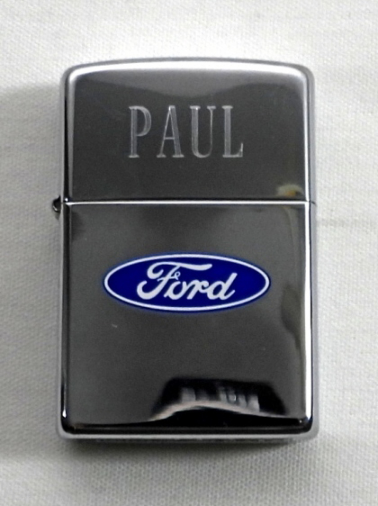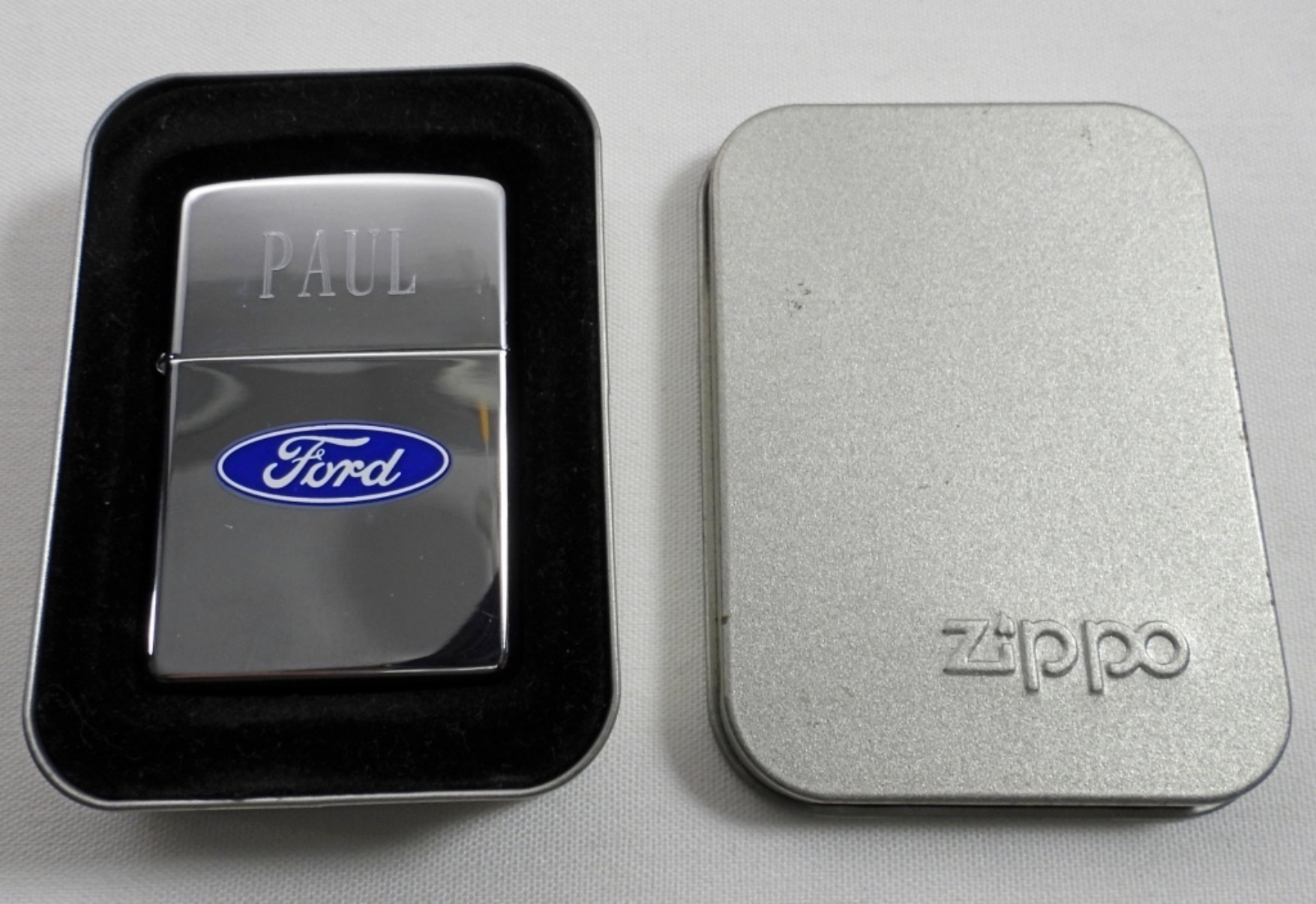 2003 FORD OVAL LOGO ZIPPO LIGHTER (FIRED) IN ORIGINAL TIN( ENGRAVED PAUL)