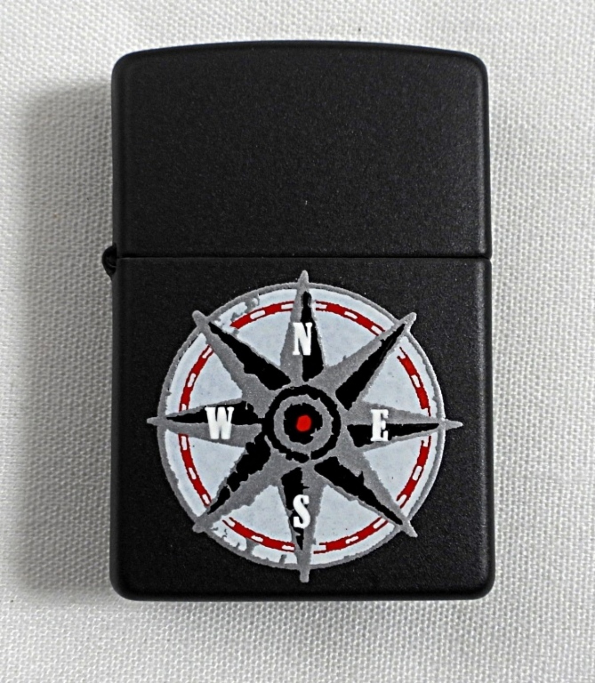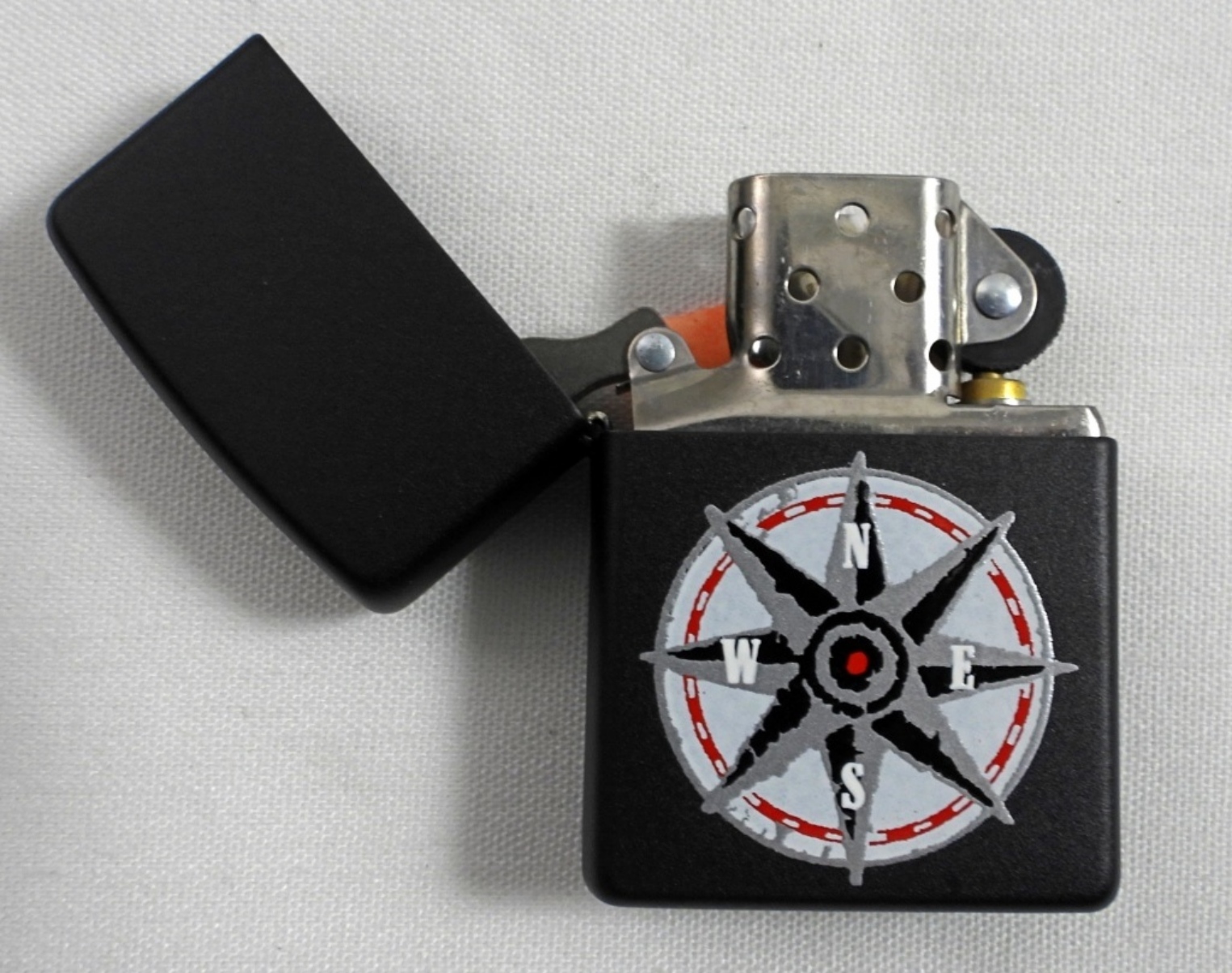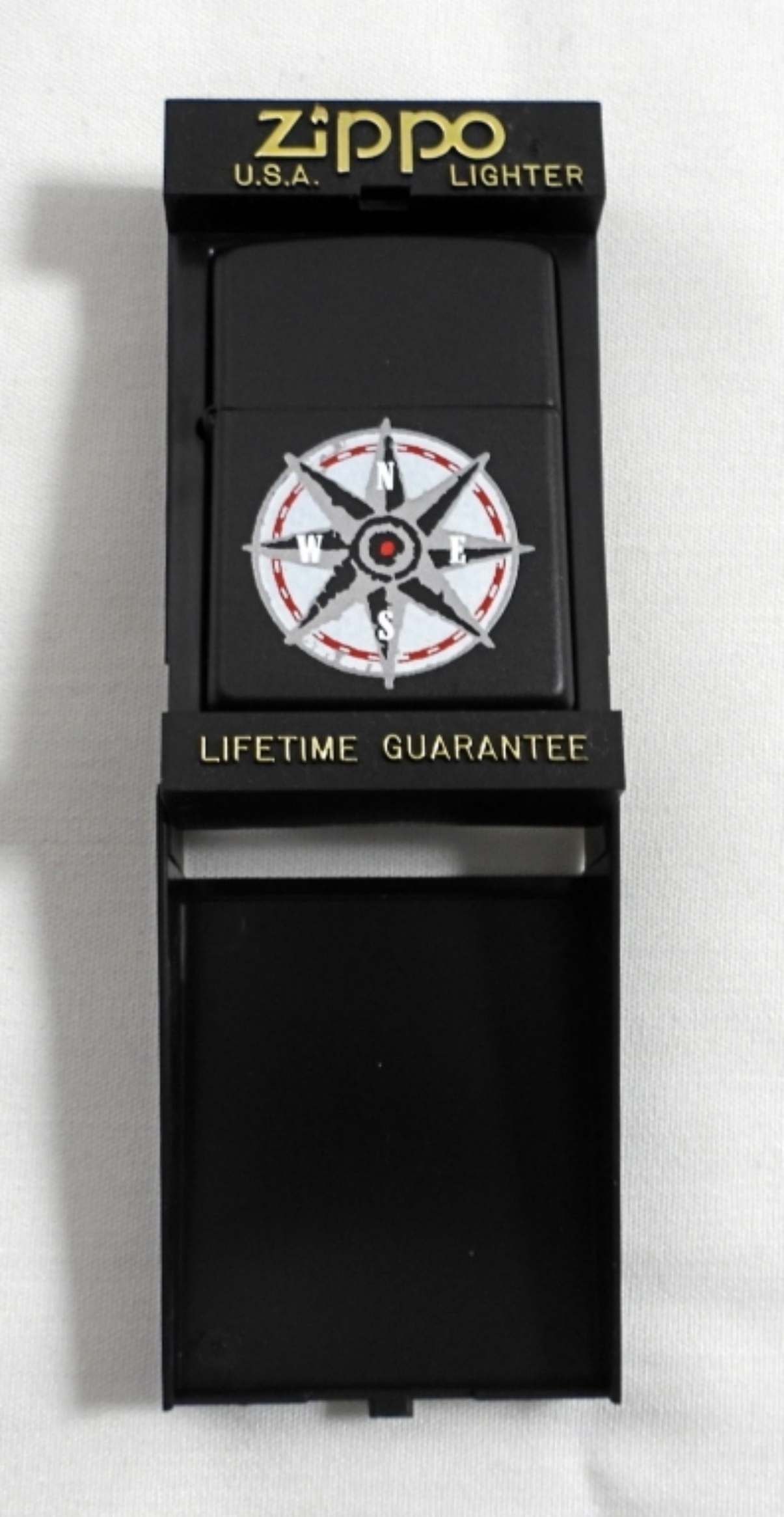 1997 ( SEALED / UNFIRED) MARLBORO ADVENTURE TEAM COMPASS BLACK MATT ZIPPO LIGHTER IN CASE