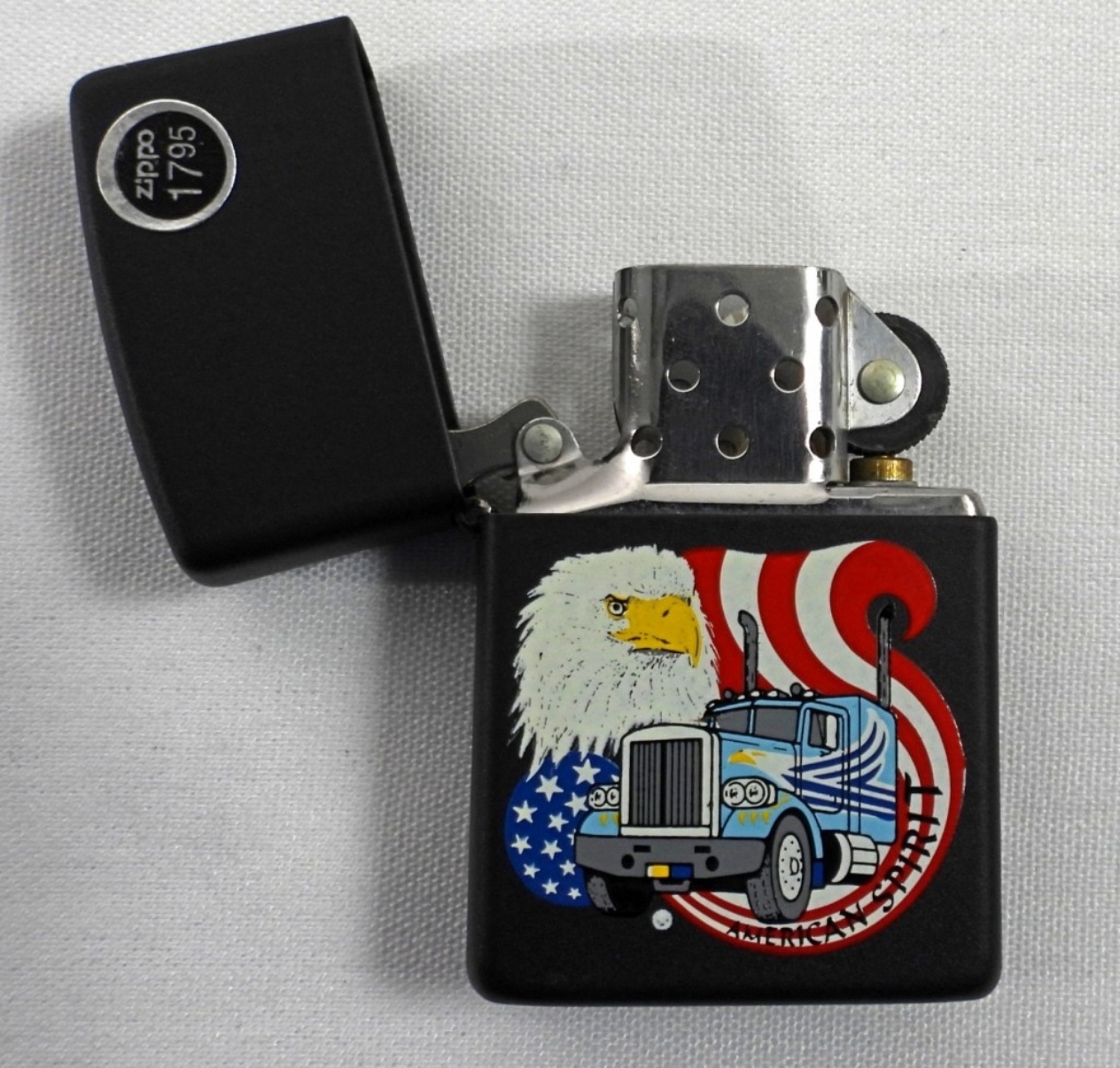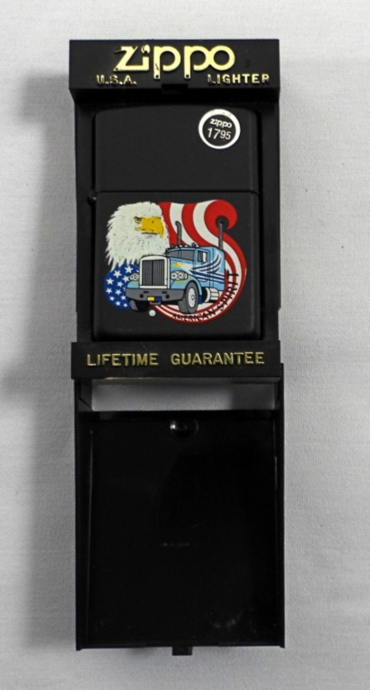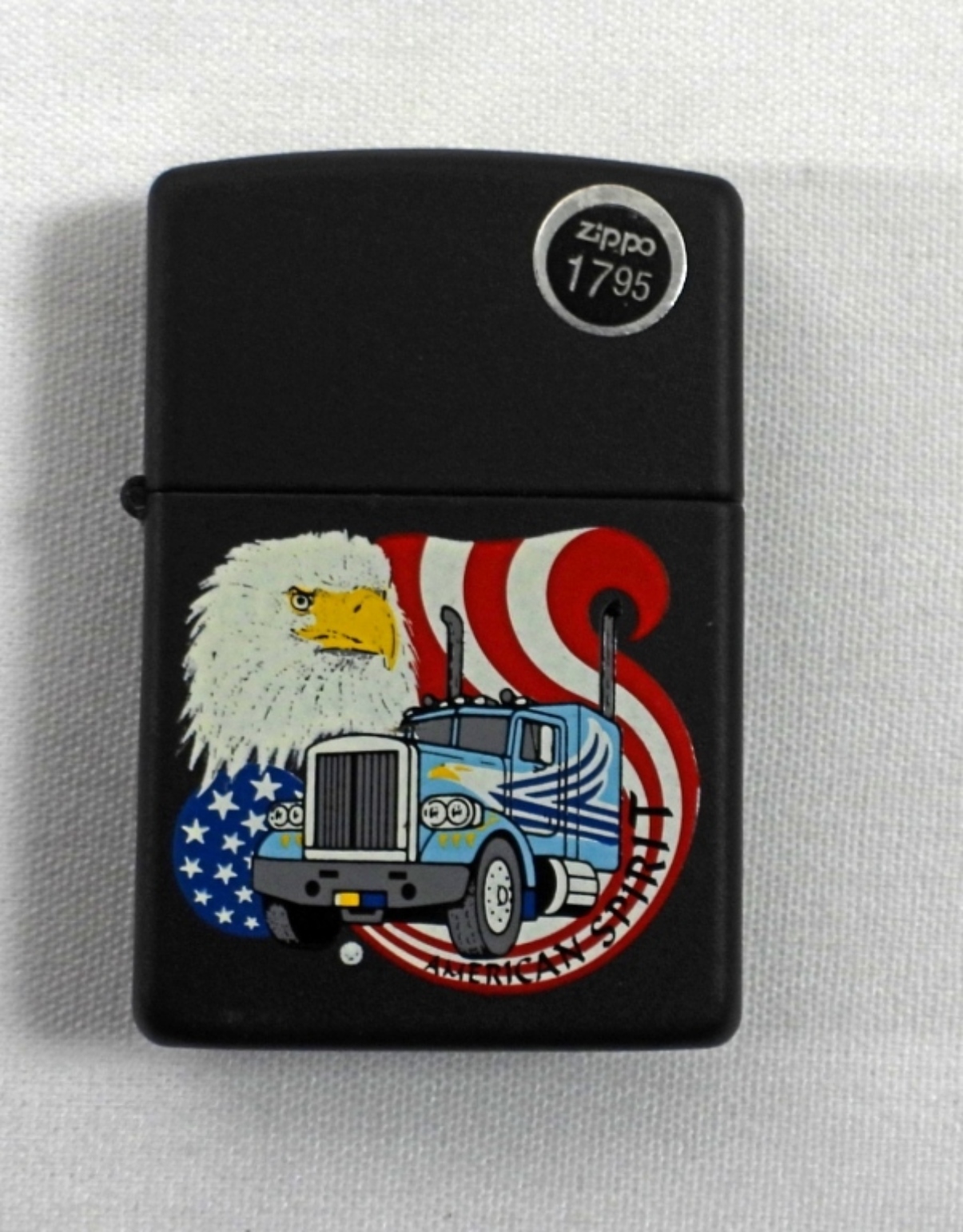 1991(UNFIRED) BLACK MATTE AMERICAN SPIRIT EAGLE SEMI TRUCK ZIPPO IN CASE