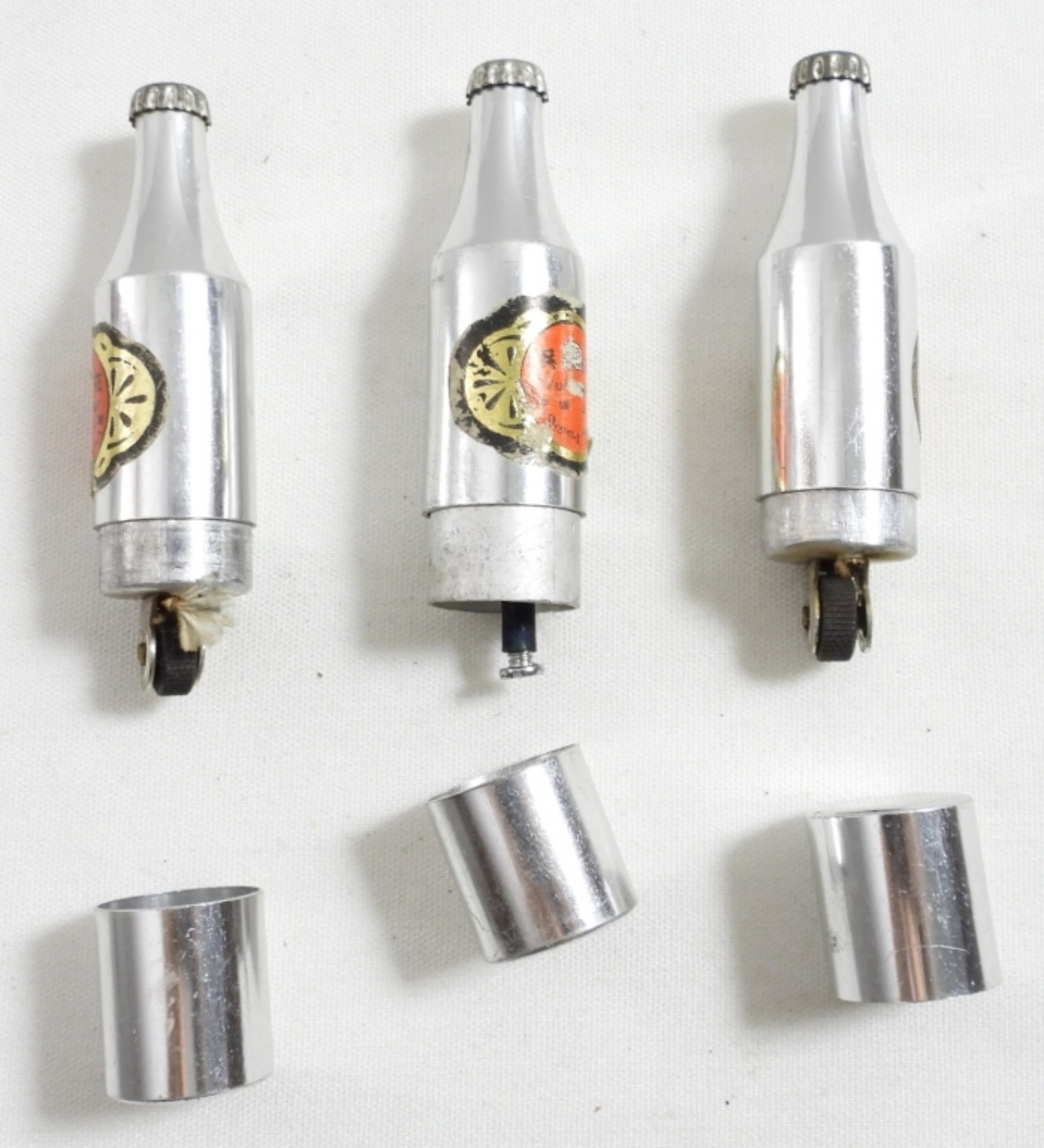 (3) NOVELTY SHANGHAI BOTTLE LIGHTERS SILVER TONE