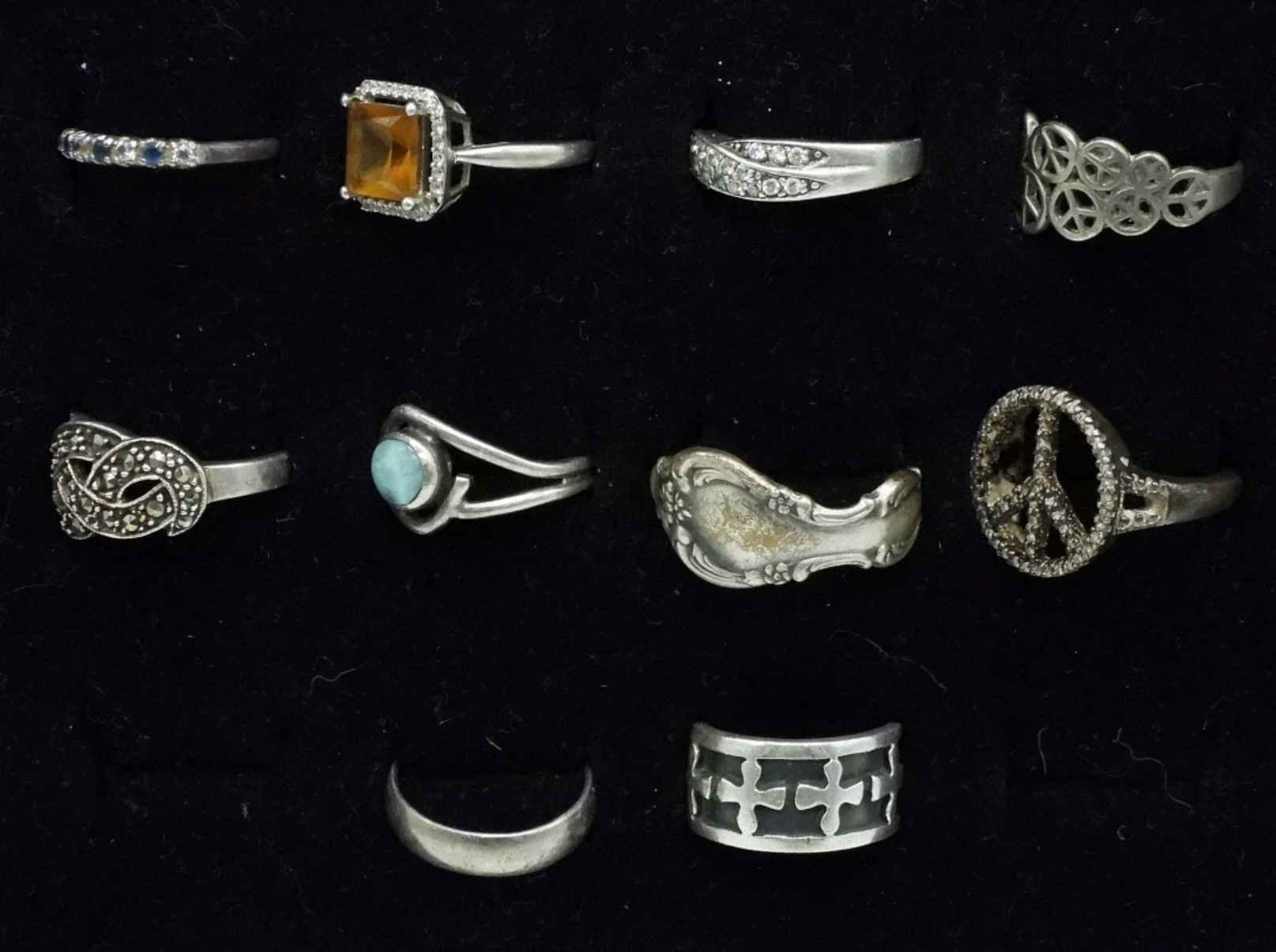 TEN STERLING SILVER FASHION RINGS. SOME GEMSTONES, SOME GEMSTONES. SIZES 6-7.5. 25 DWT
