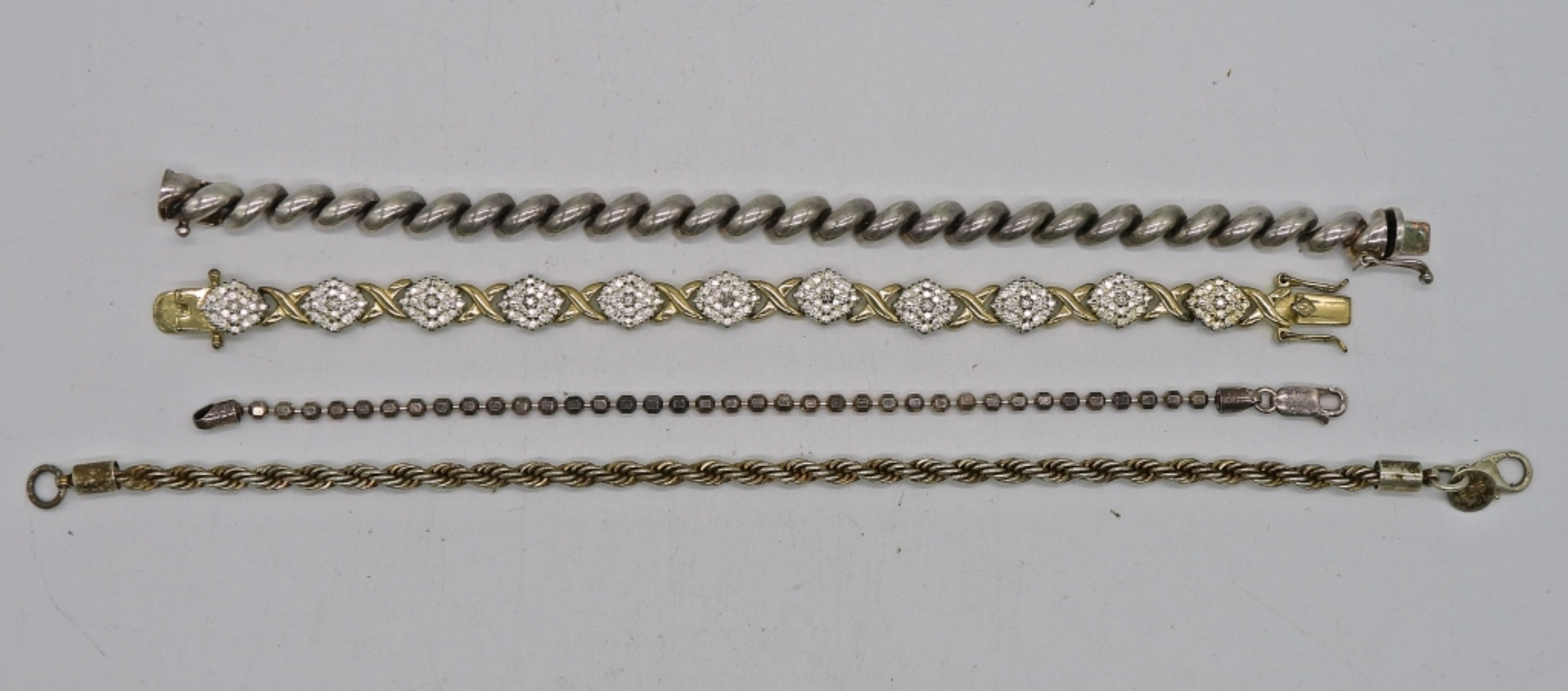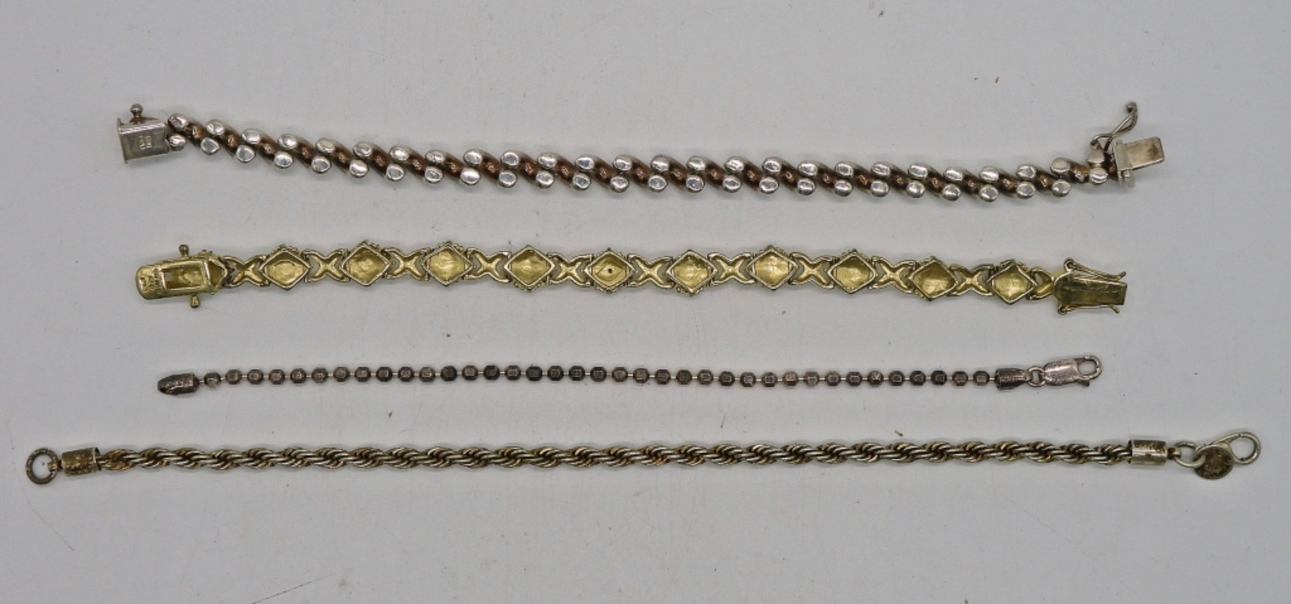 FOUR STERLING BRACELETS, 6-8″. 26.5 DWT