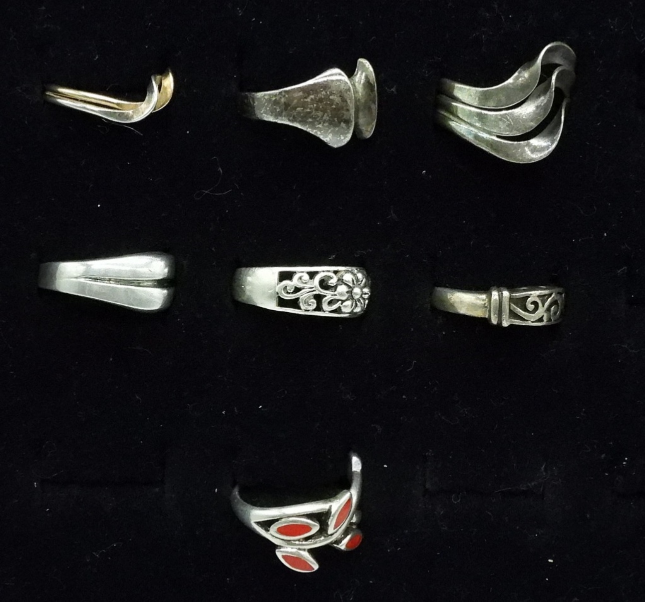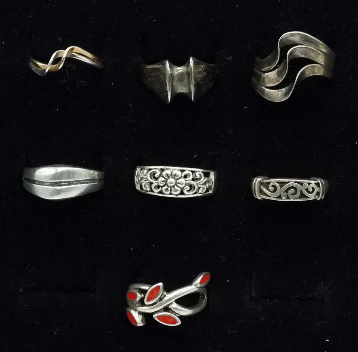 SEVEN STERLING SILVER BANDS, SIZES 6-9. 16 DWT