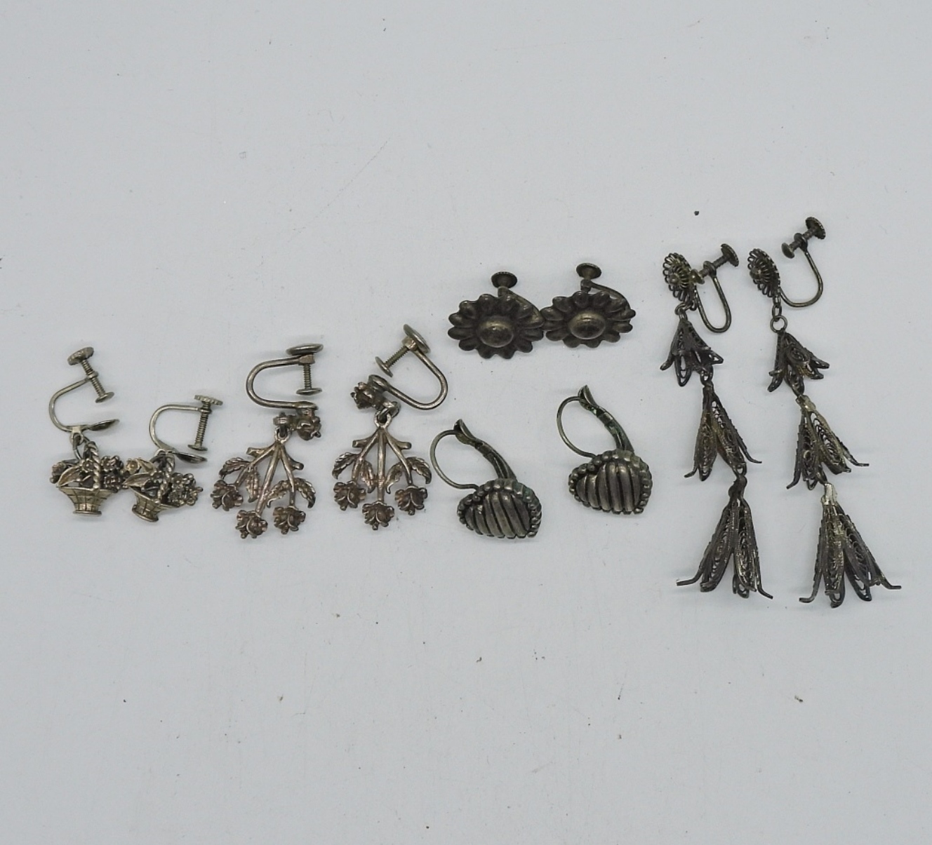 22.3 DWT. (4) SCREWBACK & (1) PIERCED. (2) PAIRS ARE STAMPED
