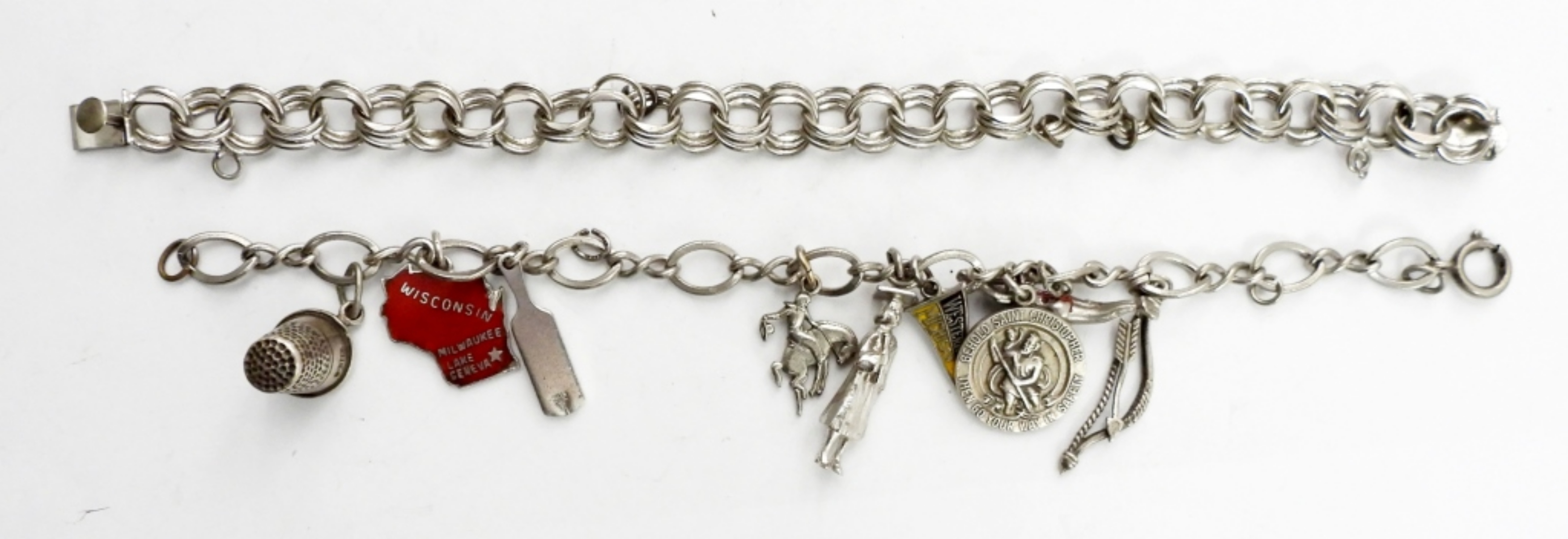 (2) 7IN VINTAGE STERLING CH ARM BRACELETS WITH 9 CHARMS.28.4 DWT
