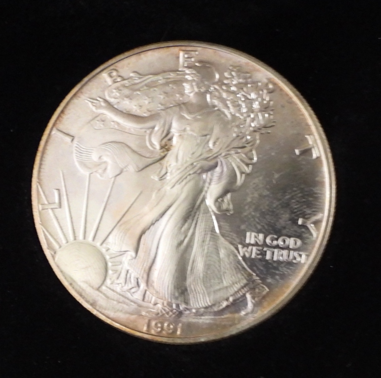 RAW COIN IN VELVET DISPLAY CASE WITH SLEEVE.