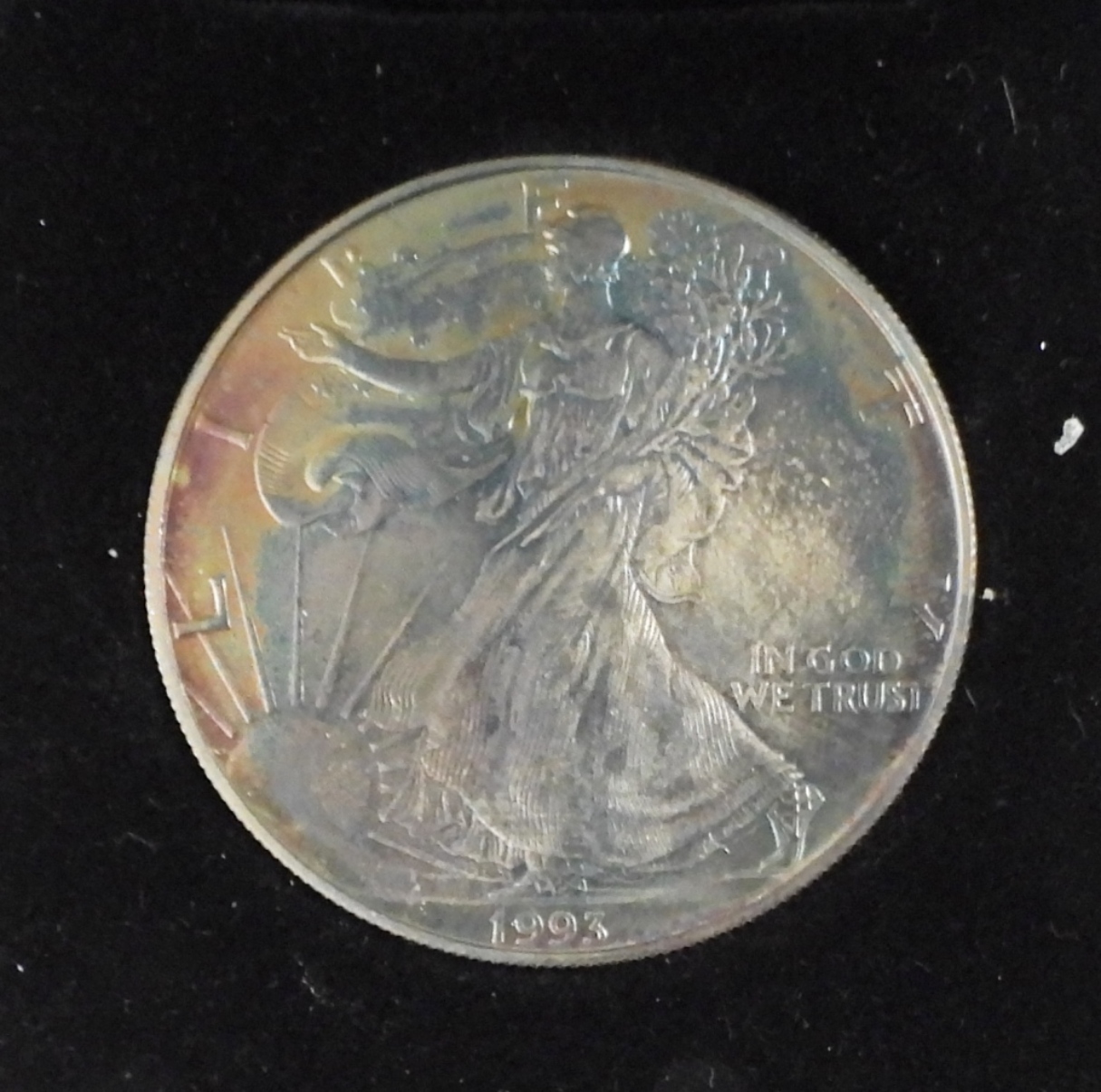 RAW COIN IN VELVET DISPLAY CASE WITH SLEEVE.