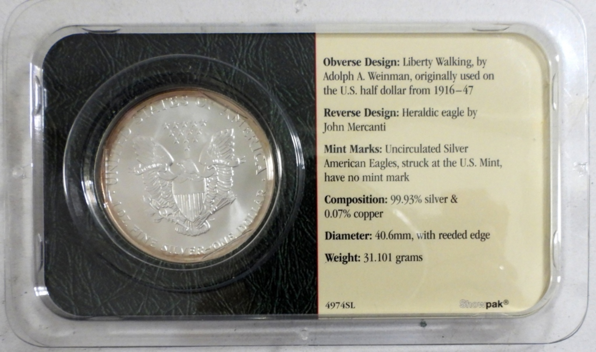 AMERICAN SILVER EAGLE 1ozt .999 PURE SILVER