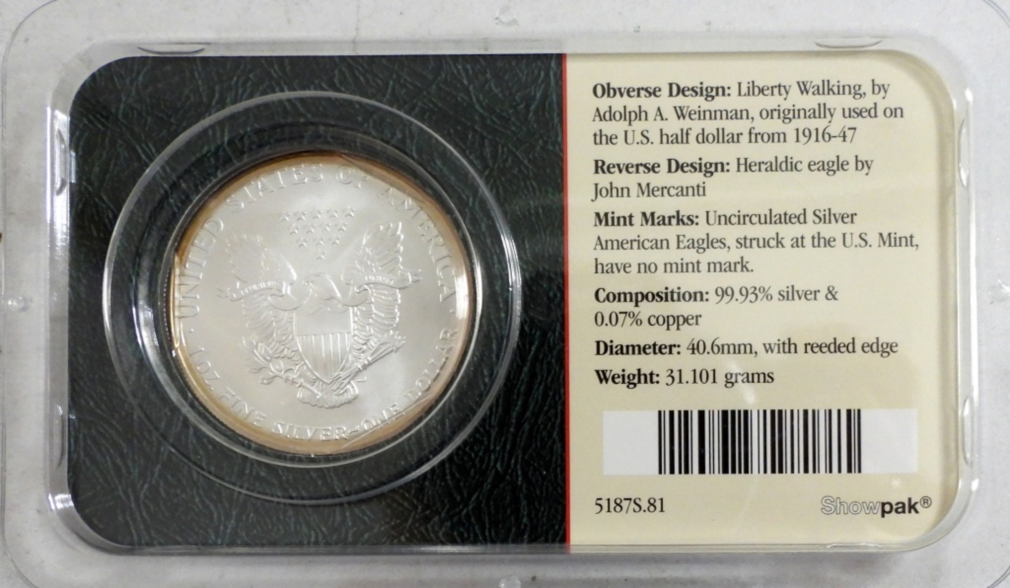 AMERICAN SILVER EAGLE 1ozt .999 PURE SILVER