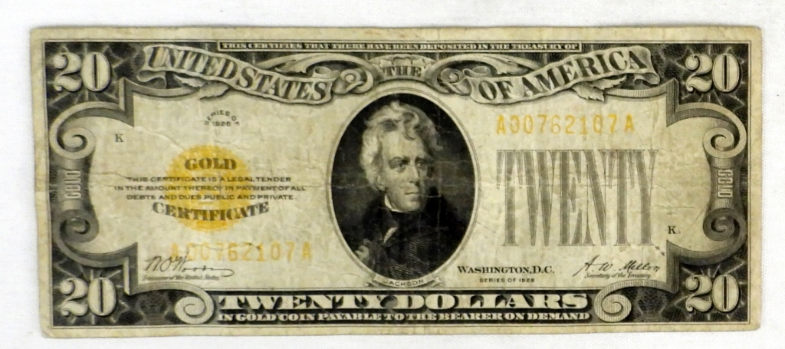 1928 $20 GOLD CERTIFICATE NOTE, CIRCULATED