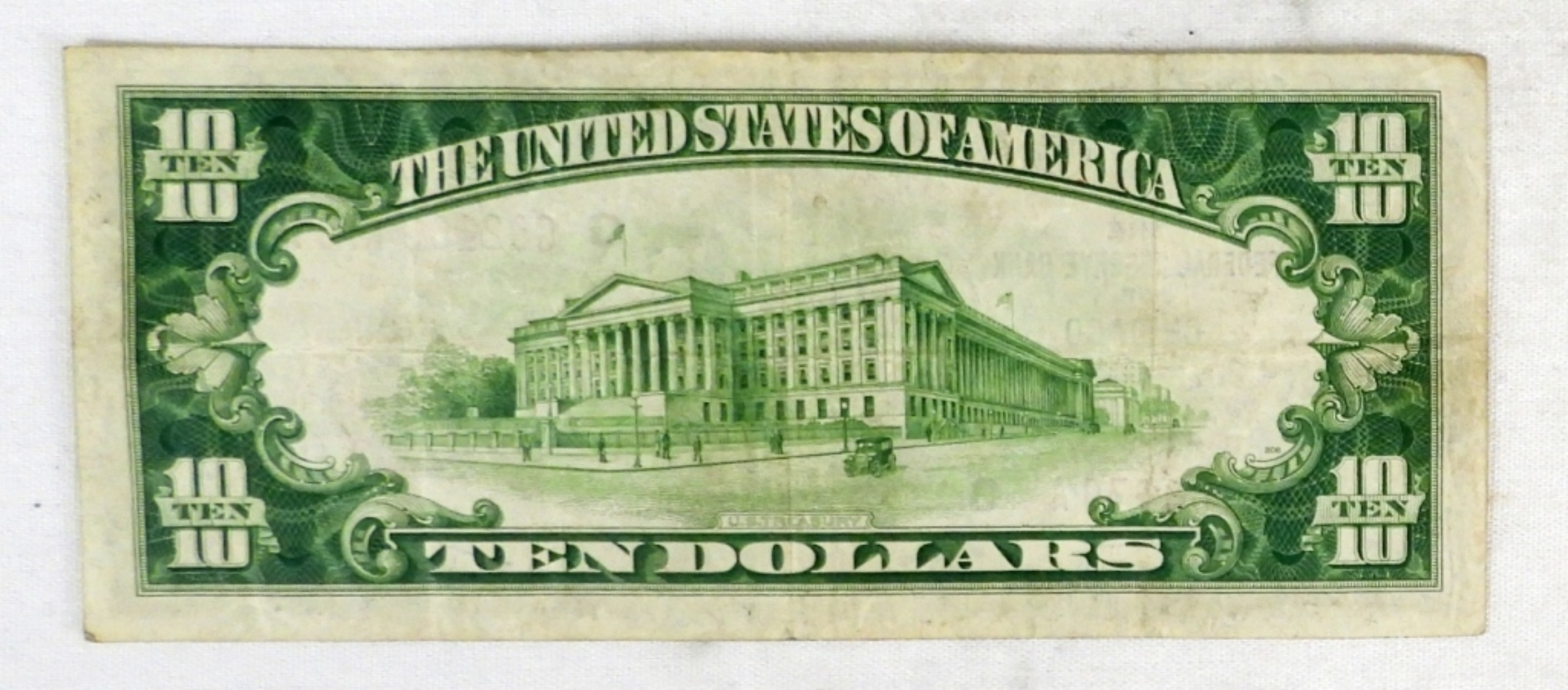 1929 $10 US NATIONAL CURRENCY FEDERAL RESERVE BANK OF CHICAGO, NICE CIRC