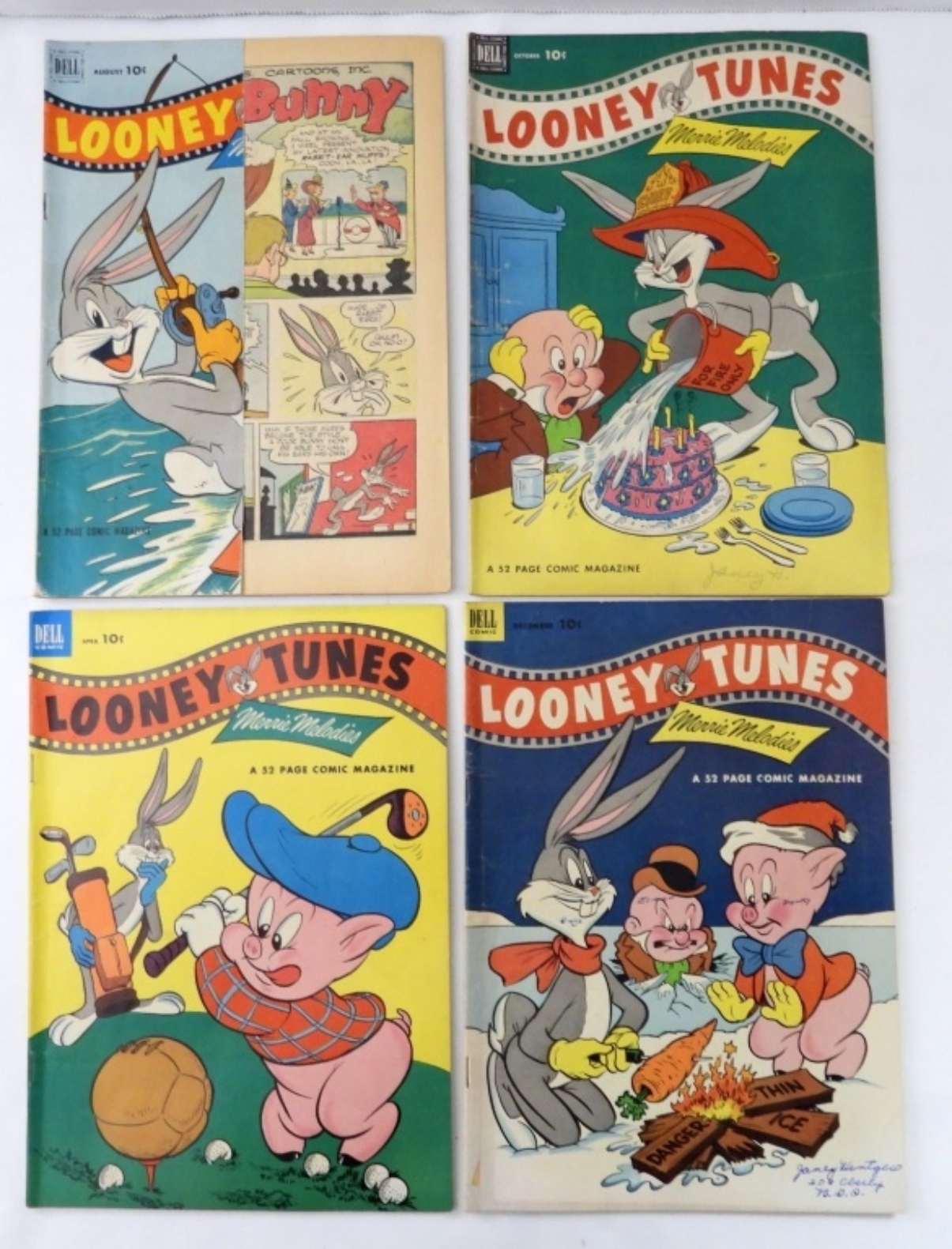 (8) LOONY TUNES & MERRIE MELODIES DELL COMICS,1950S, SMALL WRITING/SCRIBBLES ON SOME COVERS, NO 138, 137, 135, 134, 133, 132, 131, & 130. NO 130 MISSING HALF FRONT COVER, OTHERWISE ALL IN GOOD CONDITON