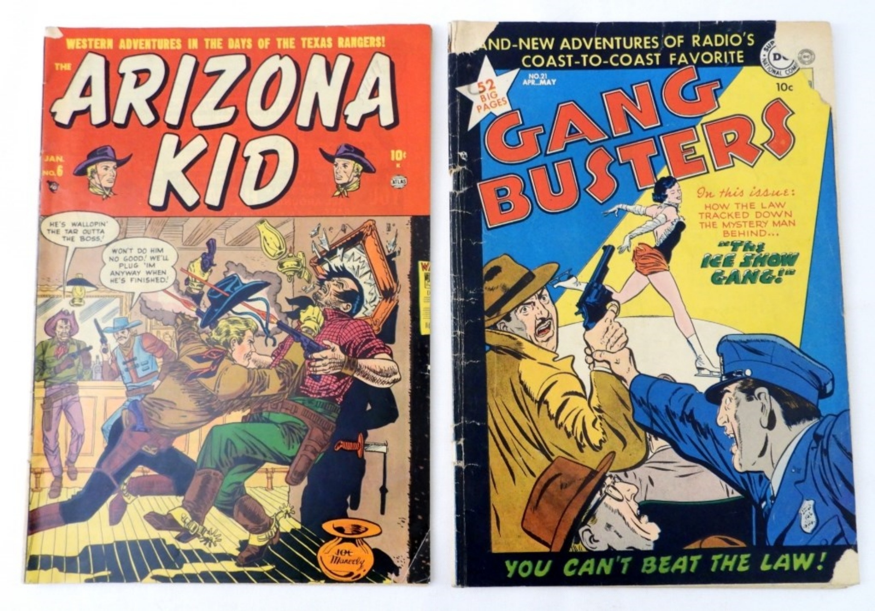 ARIZONA KID #6 & GANG BUSTERS #21, 1950S GOLDEN AGE, GOOD TO FAIR CONDITION, GANG BUSTERS 3 TORN CORNERS FRONT COVER