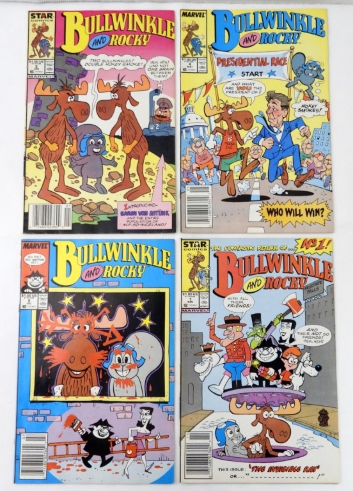 (4) MODERN MARVEL BULLWINKLE& ROCKY COMICS (VG-XF) #1 , #2,#3 PRESIDENTIAL RACE RONALD REAGAN, #5