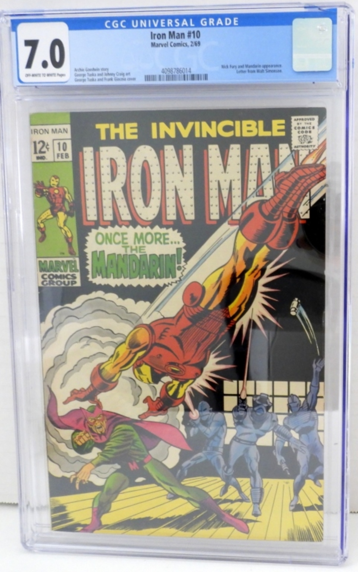 1969 THE INVINCIBLE IRON MAN # 10 GRADED (7.0) IRON MAN VS THE MANDARIN