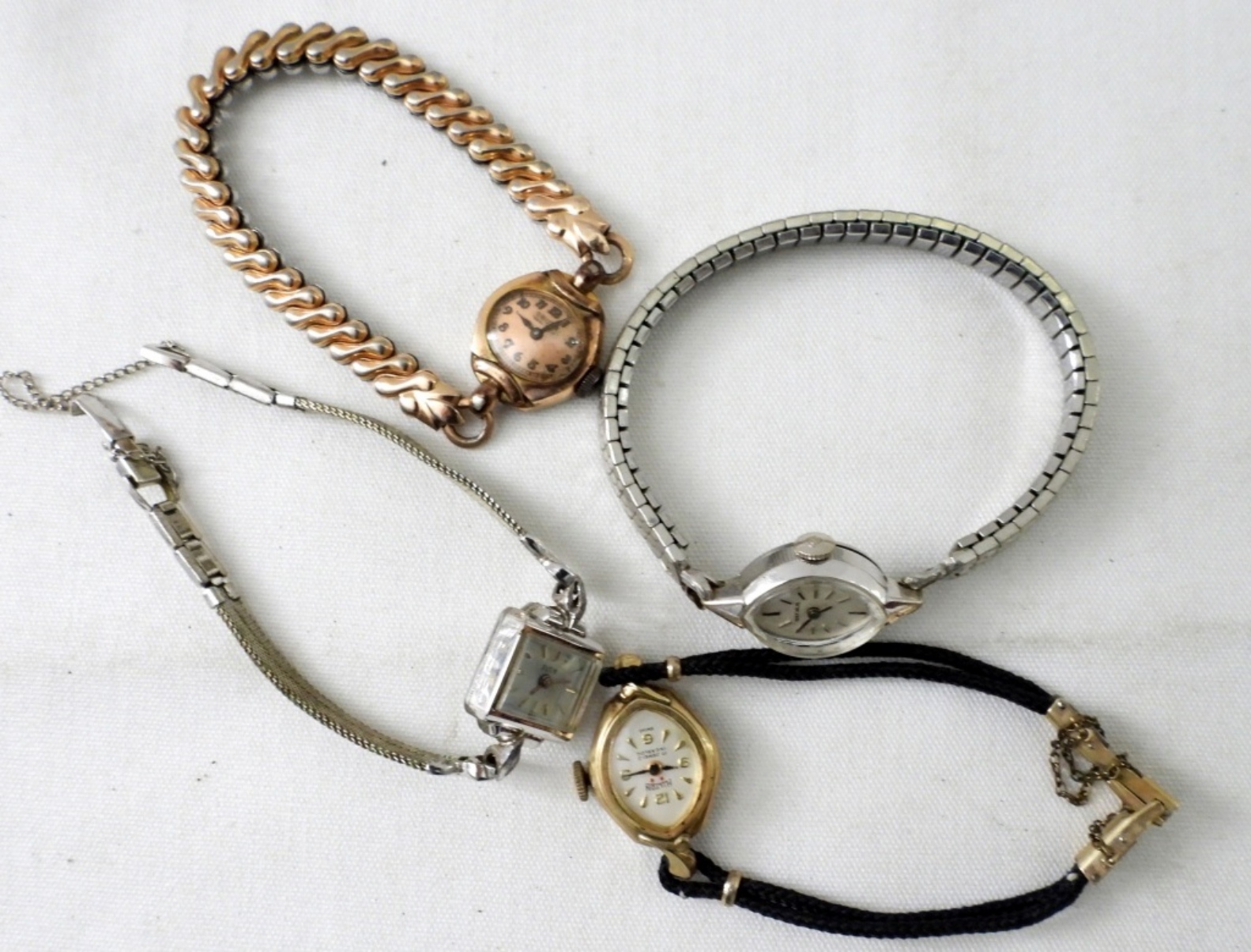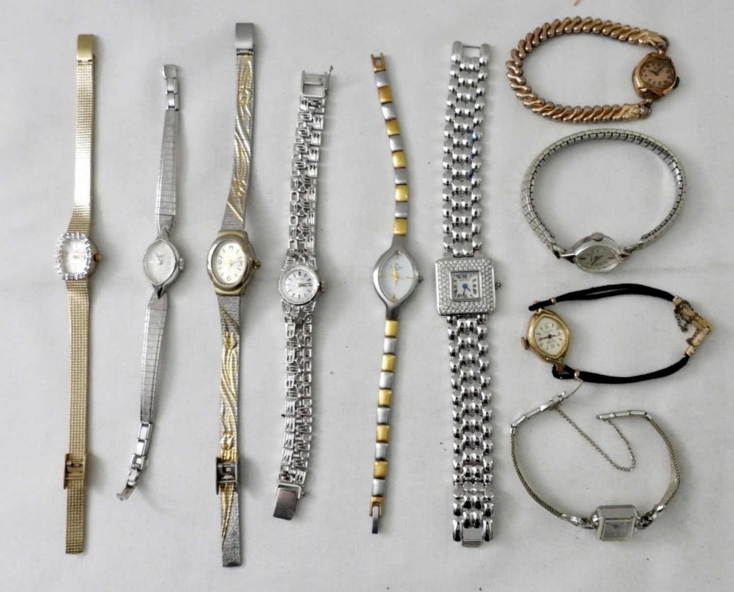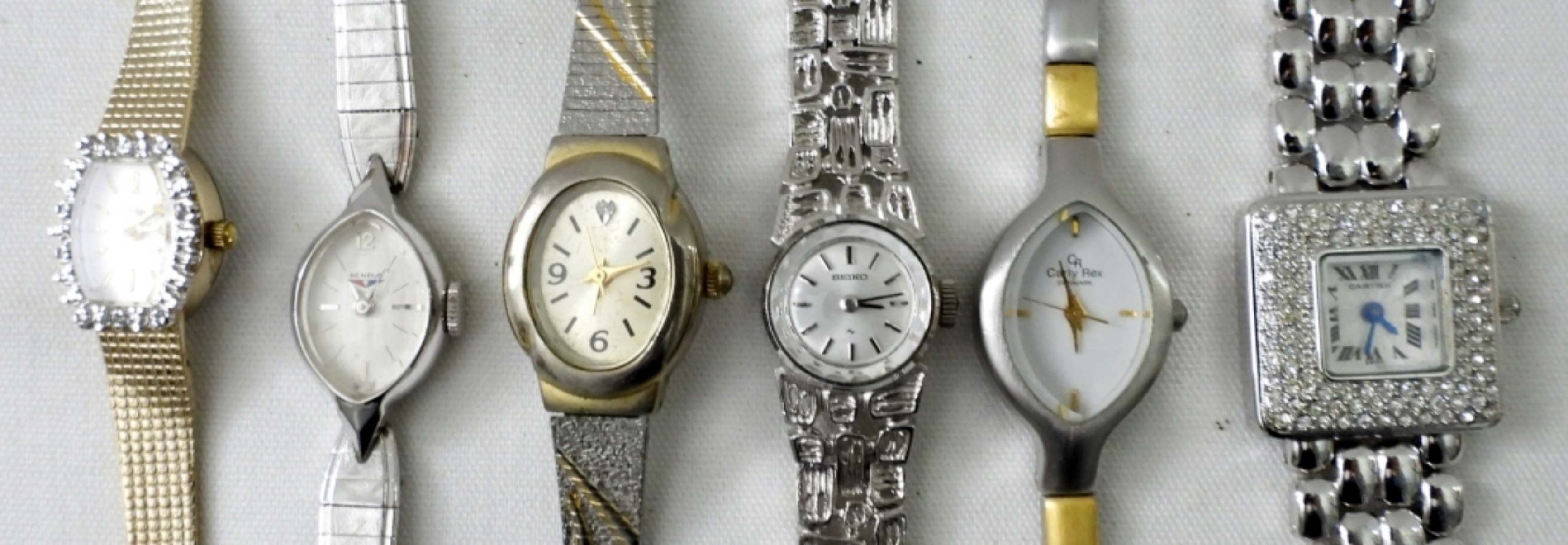 (10) VINTAGE LADIES WATCHES ELGIN, GRUEN ,SEIKO & MORE,ASSORTED STYLES AND COLORS. NOT TESTED AS TO WORKING OR NOT