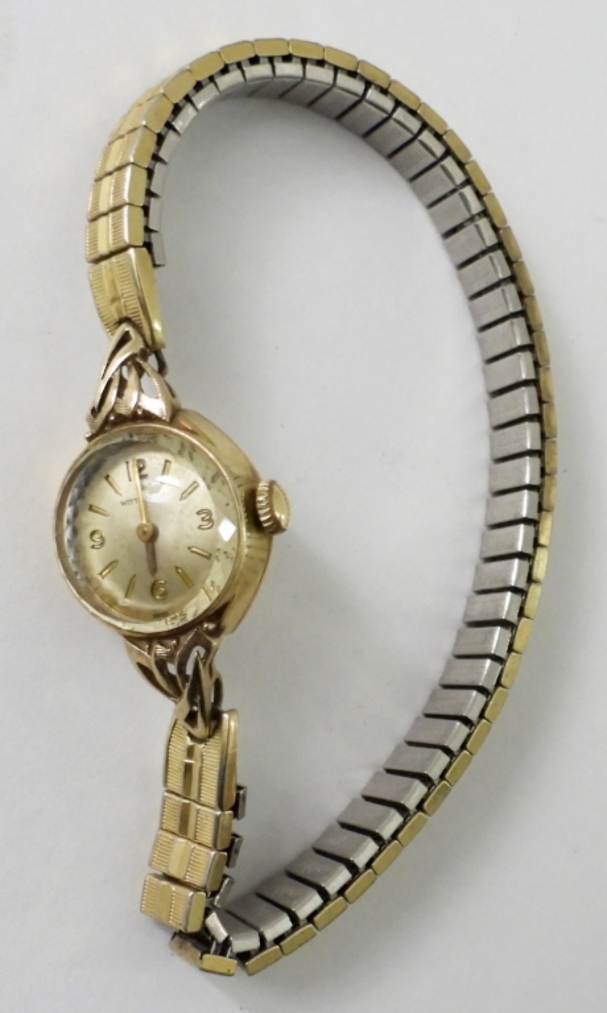 VINTAGE LADIES GOLD TONE WITTNAUER WATCH,(STRETCHY BAND) NOT TESTED AS TO WORKING OR NOT